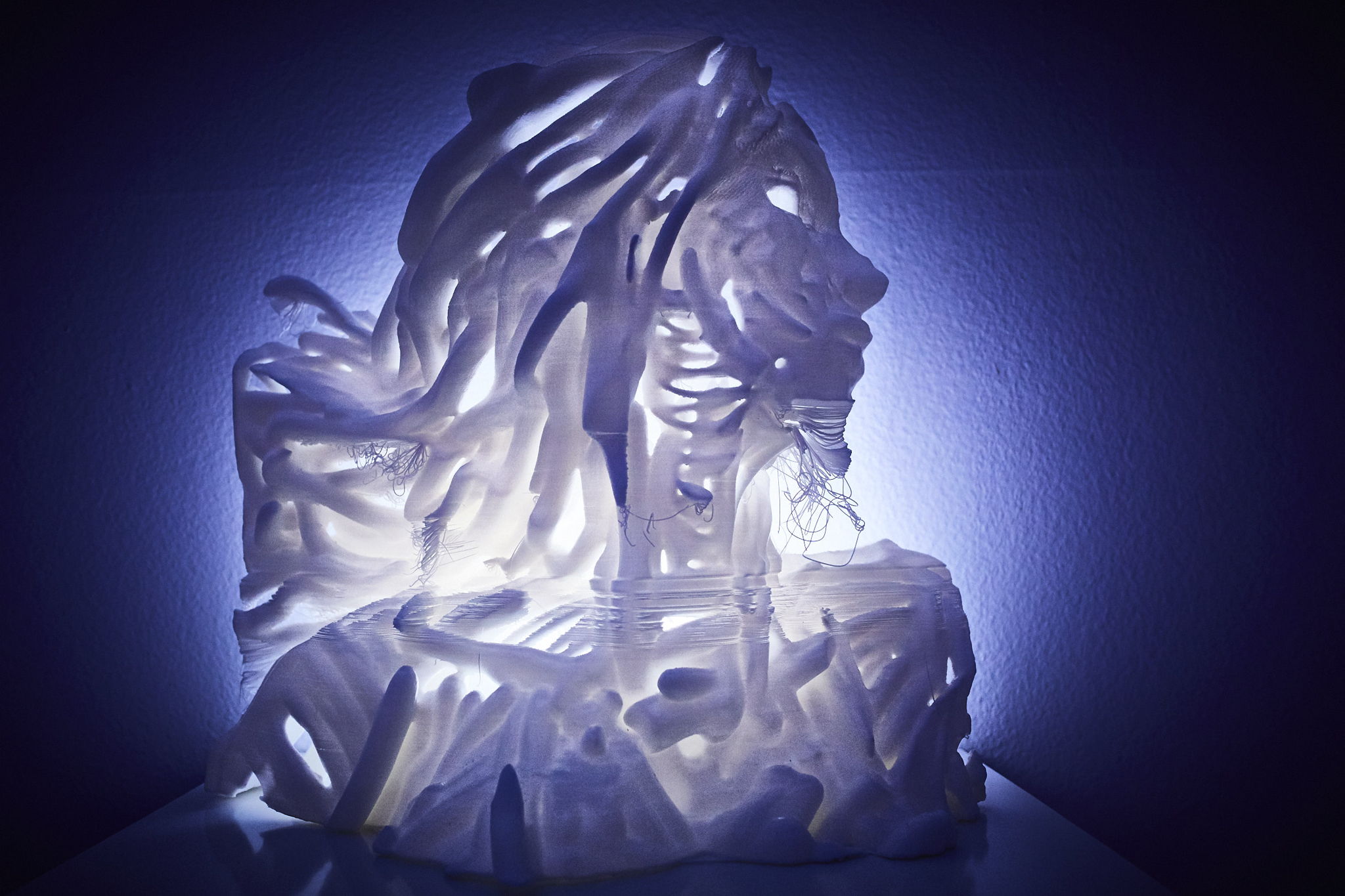 I made a 3d sculpture on computer and then 3d printed into biodegradable plastic to create something digital that will remains and the real/physical file will have it time to disappear.