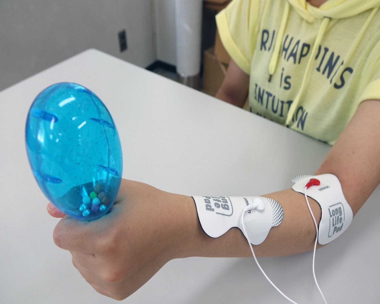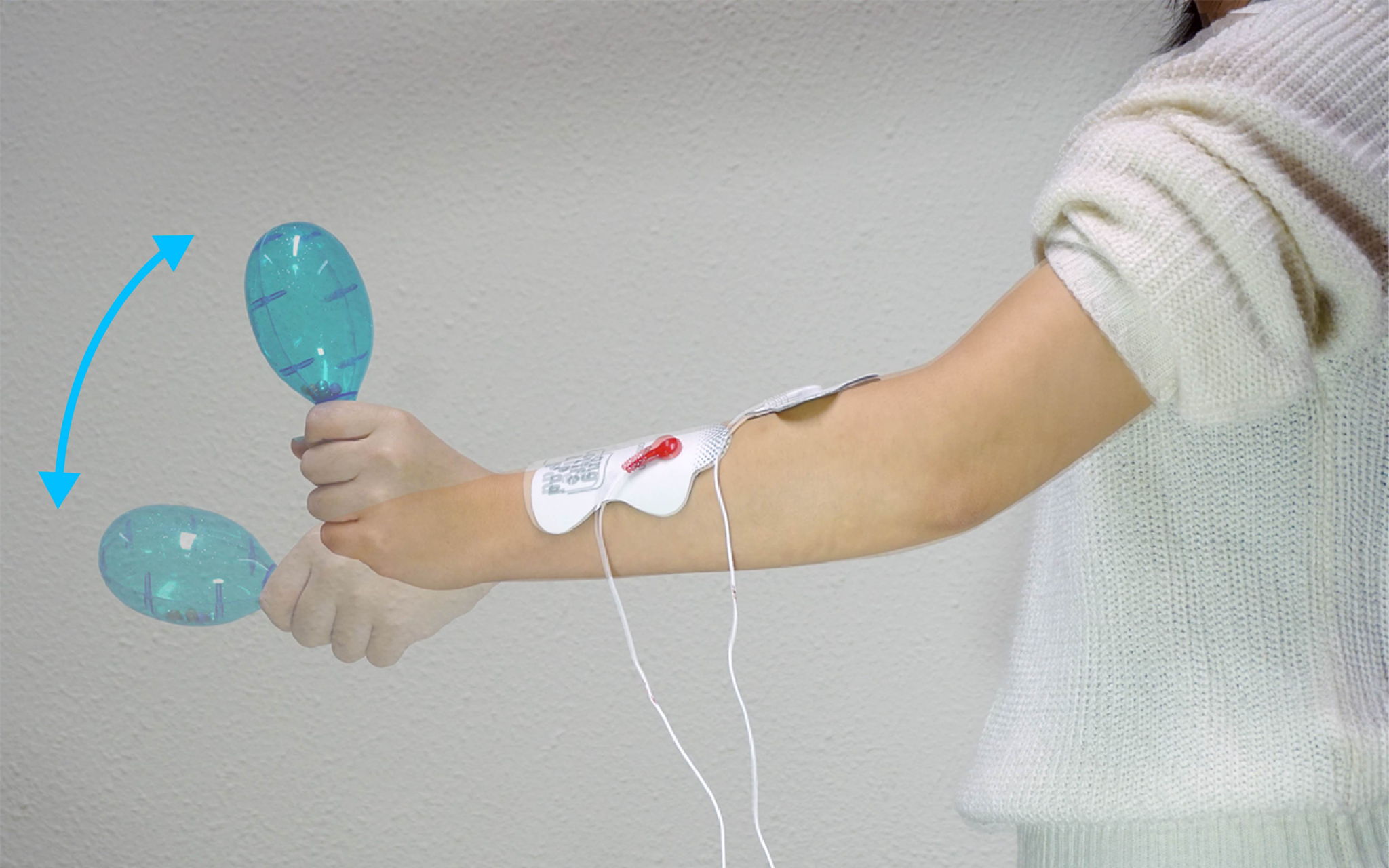 "Stimulated Percussions"はElectrical Muscle Stimulation(EMS)を用いた音楽演奏のための新しい手法である。本手法では脳でリズムを理解する前に筋肉を収縮させリズムを出現させる。言い換えると,EMSは人間のリズムの理解度に関わらず筋肉をコンピューテーショナルなアクチュエータに変換し,プログラムによって操られた身体はリズムを刻み出すのだ。つまり,この電気刺激による人体のコントロールはリズムのわからない初心者でもリズムを刻むことを可能にする。