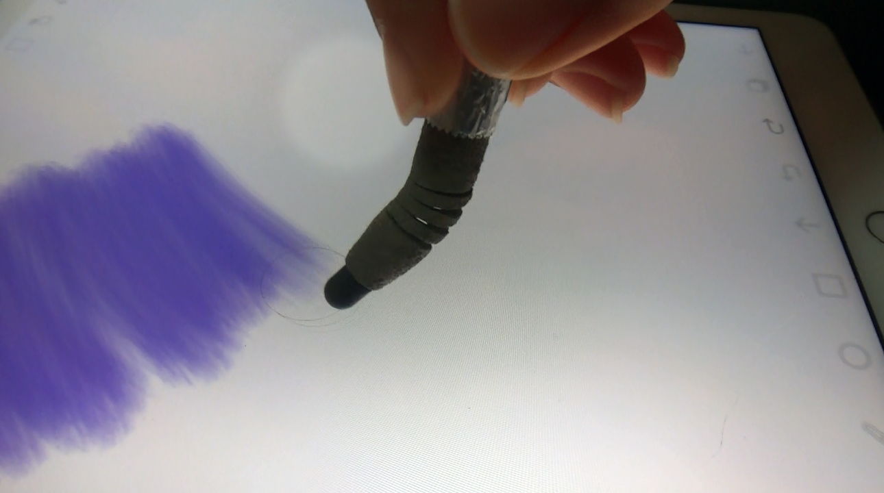 We made a stylus pen with a soft touch. By incorporating the spring structure into the pen, it gave elasticity and reproduced the feeling like a brush. Adjusted the flexibility by changing the cross section size of spring with 3DCAD, created using a 3D printer.