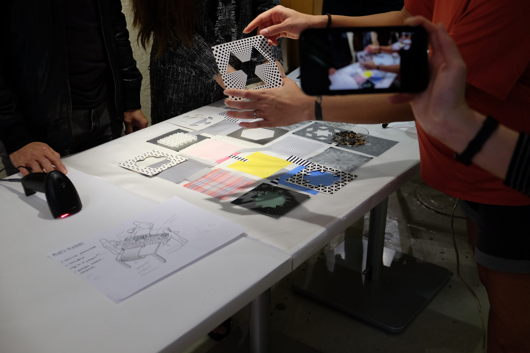 A colorful grid is made from overlapping and movable paper cut-outs. The barcoder will scan parts of grid to generate interesting sounds, based on the various patterns and color combinations. The result is a new music instrument that is explorative and playful to interact with.