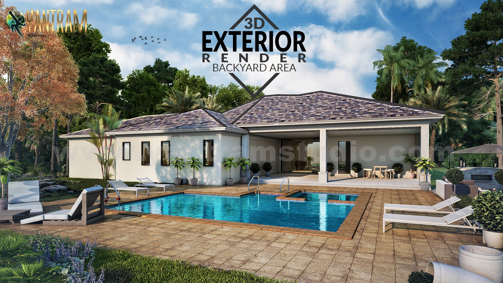 Project: 3D Architectural Rendering Residential House with backyard pool area