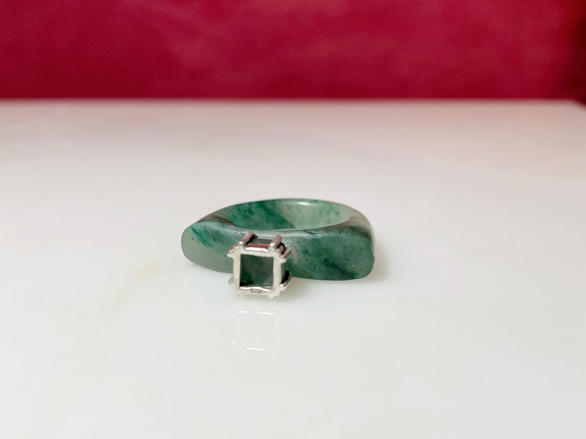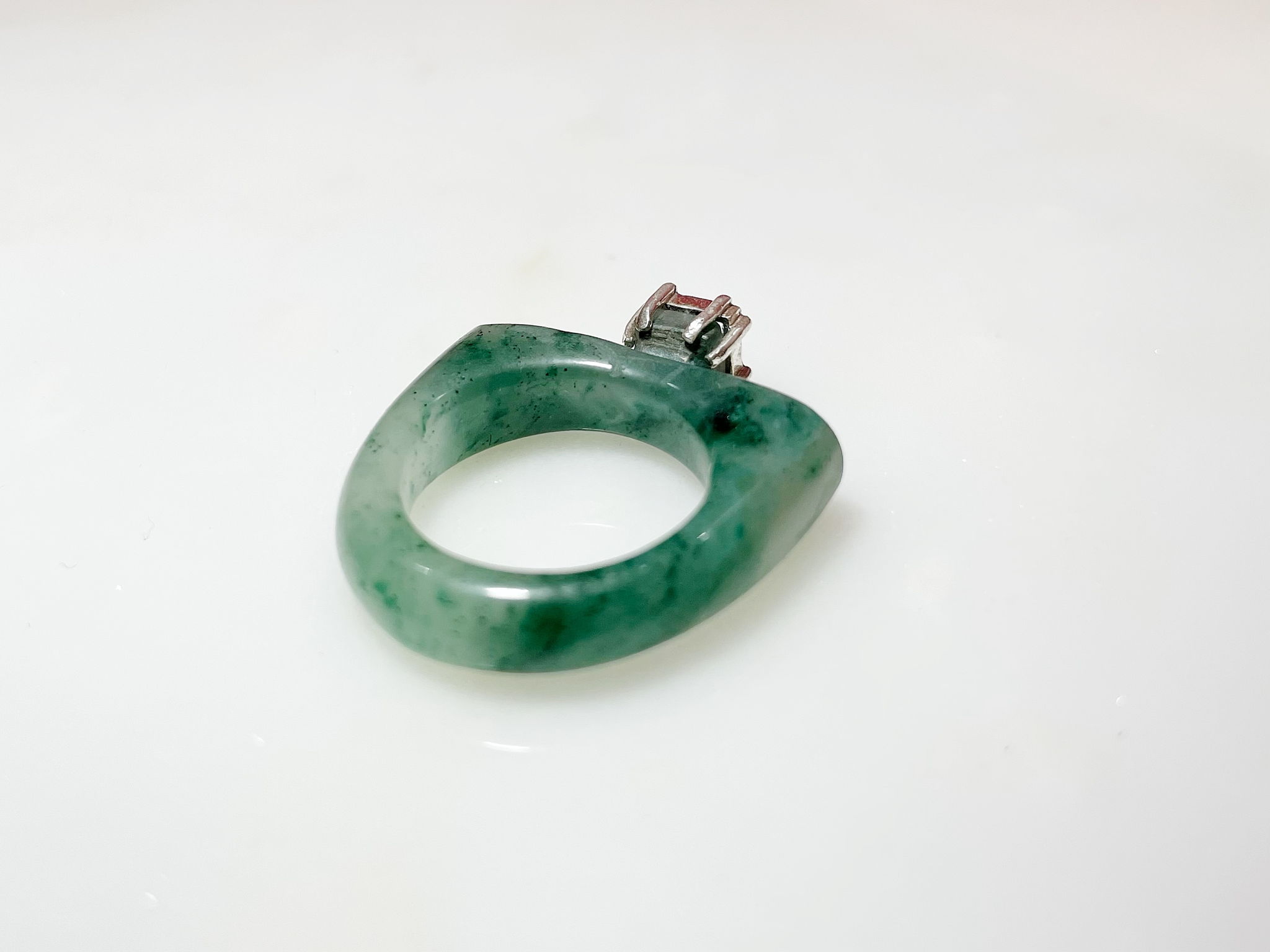 翡翠を指輪の形に彫刻しシルバーを留めています。