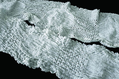 本プロジェクトは、縮緬生地製造の過程で破棄される部分を有効活用するよう開発している。例えば臼井織物株式会社では、織機の構造上、一反製織するために2ヤード程度が余剰に作られてしまう。これに加え、わずかなキズや汚れがあれば出荷できずに産業廃棄物として処分されることとなる。Sensory Pleasureで提案する制作方法では、レーザーカットでカットするため、このような小さな汚れは見えなくなり、本来ならば処分されるような部分に対しても高付加価値を与えることが可能である。また、技術的にもシンプルな手法であるため、各生産者へ手法を共有することにより、少しでも廃棄物量を減らす解決方法として浸透することが期待できる。