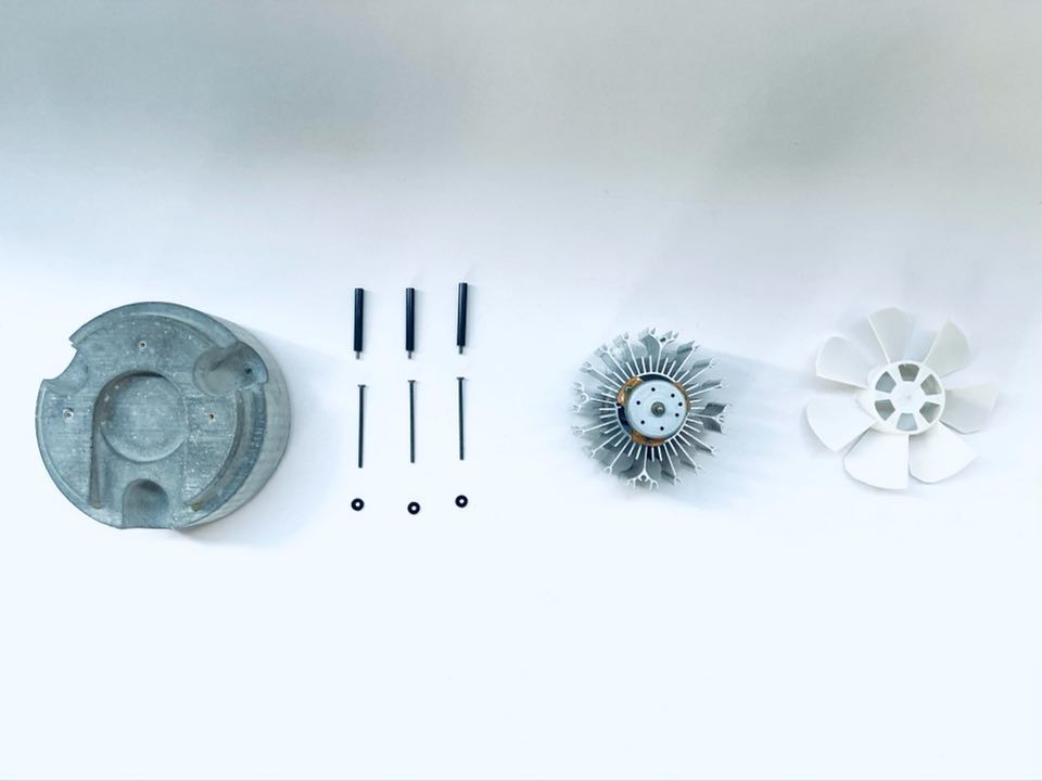 YÜGEN is a self-powered device that uses the heat of an aroma candle to generate electricity and uses that power to turn a fan to diffuse the scent.