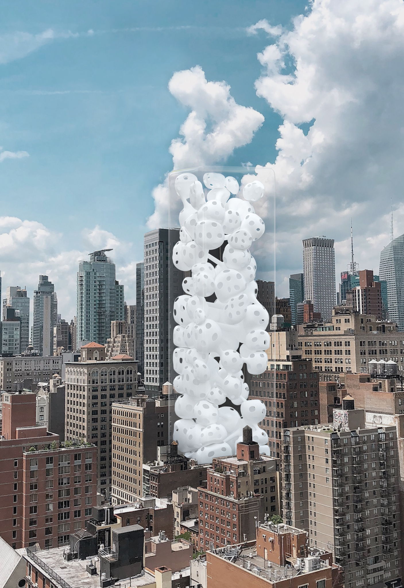 一个看起来很柔软的建筑,通过内部柔软部分向外部框架的挤压。形成一种看起来很柔软却拥有硬外表的建筑。尝试一种包裹性高层建筑的可行性。