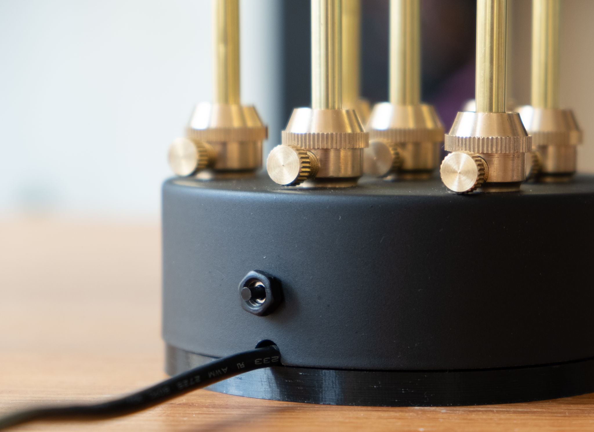 Canari was created by Brussels-based designer Guillaume Slizewicz. The lamp is made of brass, glass, and custom 3D-printed parts and includes a microcontroller connected to real-time open data on pollution that controls 7 LEDs. Once connected to the internet, the lamp will fetch data from public API to determine the air quality (PM2.5 and PM10). The LEDs are dimmed according to local air pollution measures available on citizen science sites such as sensor.community or smartcitizen.me. The project was released under a Creative Common License, and tutorials on building and connecting the lamp can be found online.