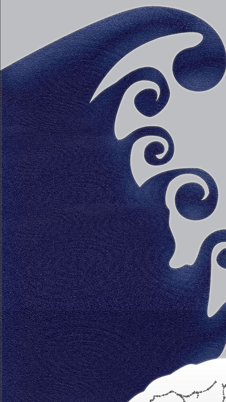 また人間が持つ相反する要素を、波と渦巻で表すことで抽象化しました。 -