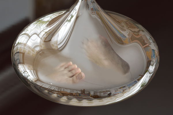 ガラスの中の足を模した立体物には、様々な人の足の感覚を入れられます。