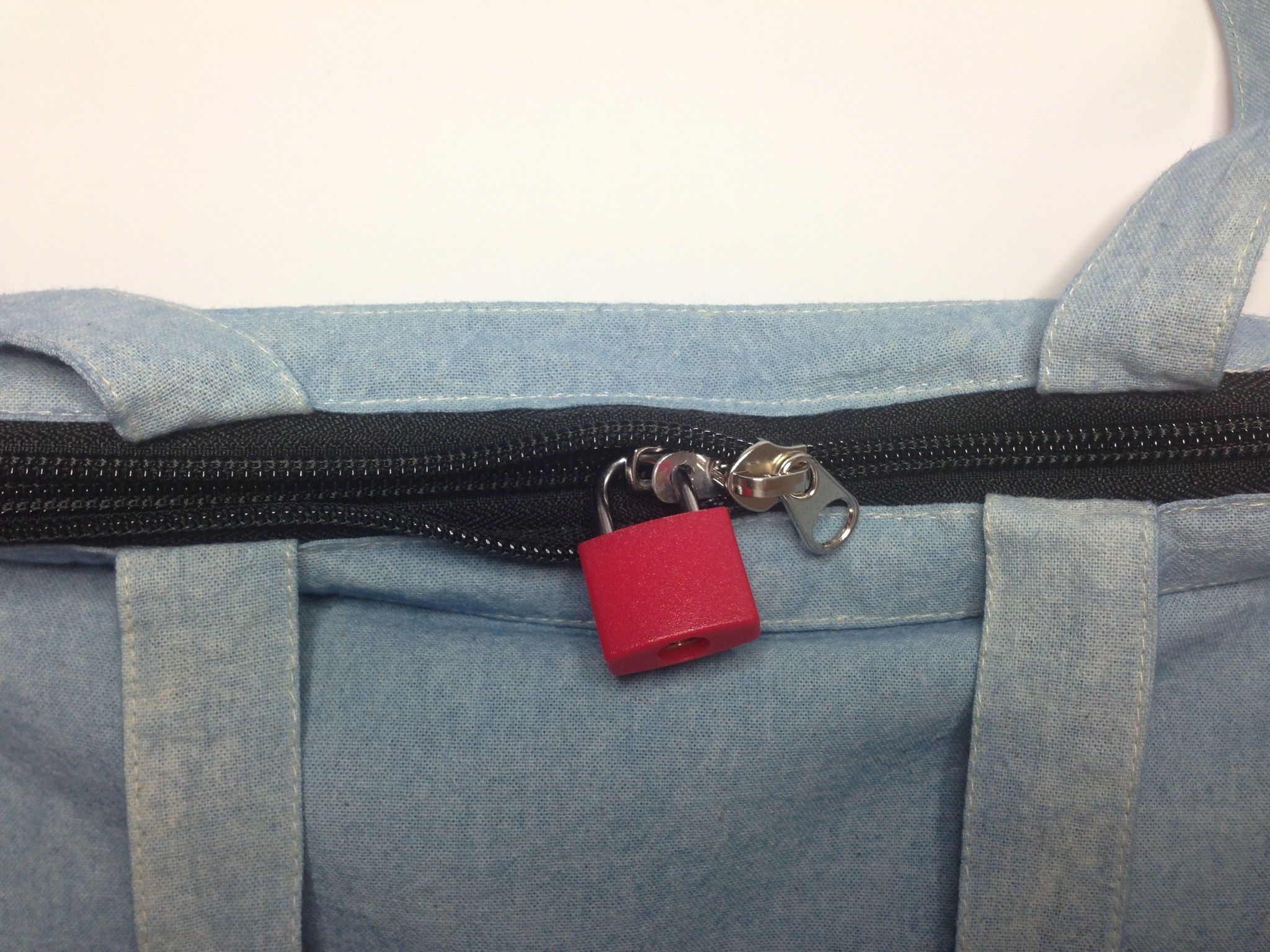 他人にファスナーが開けられないように、スライダーとカバンやスライダー同士を南京錠などで施錠したりします。