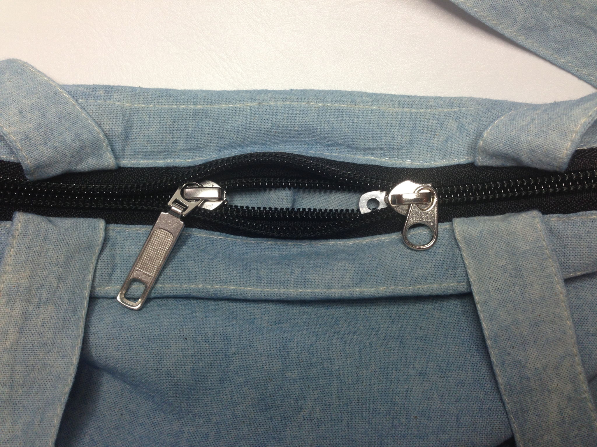 -Place the two zippers on top of each other in different directions.