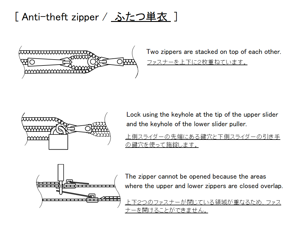 【 ふたつ単衣 】 Anti-theft zipper