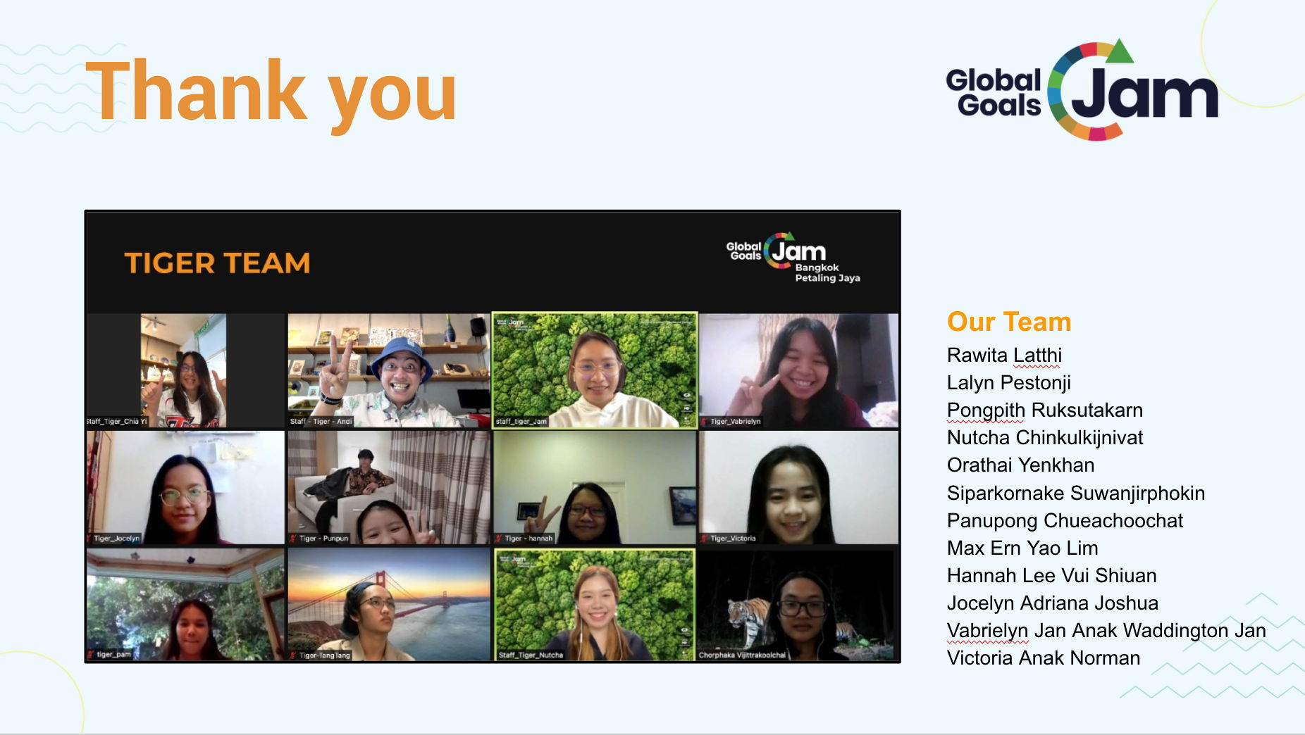 Rawita Latthi | Lalyn Pestonji | Pongpith Ruksutakarn | Nutcha Chinkulkijnivat | Orathai Yenkhan | Siparkornake Suwanjirphokin | Panupong Chueachoochat | Hannah Lee Vui Shiuan | Jocelyn Adriana Joshua | Vabrielyn Jan Anak Waddington Jan | Victoria Anak Norman