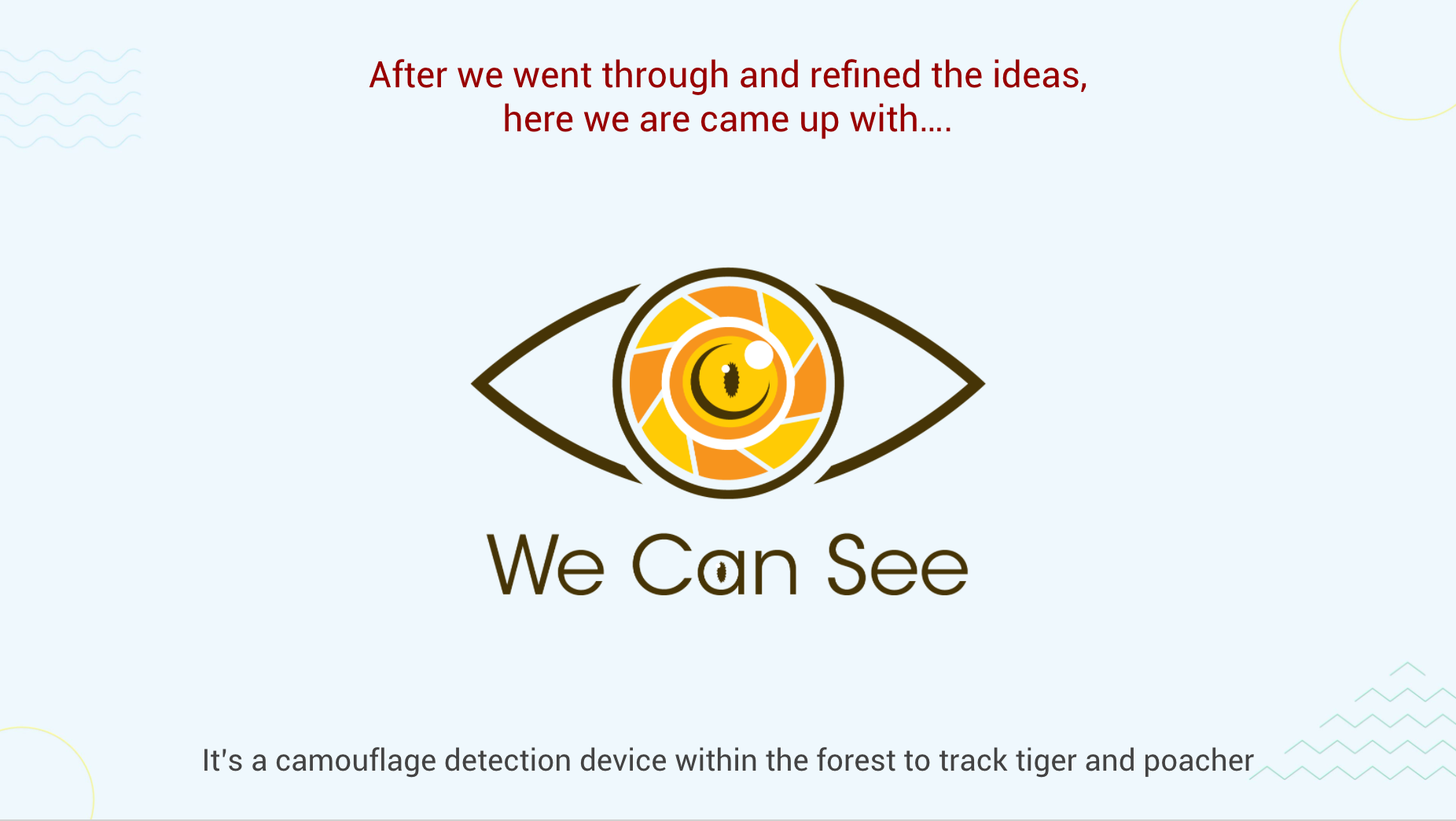 Tiger team were discussing on how are we going to protect the tigers from being hunted by the hunters. Therefore, we came up with this ideas, which is the CCTV look-like nature environment. Let me explain on how it's worked.
