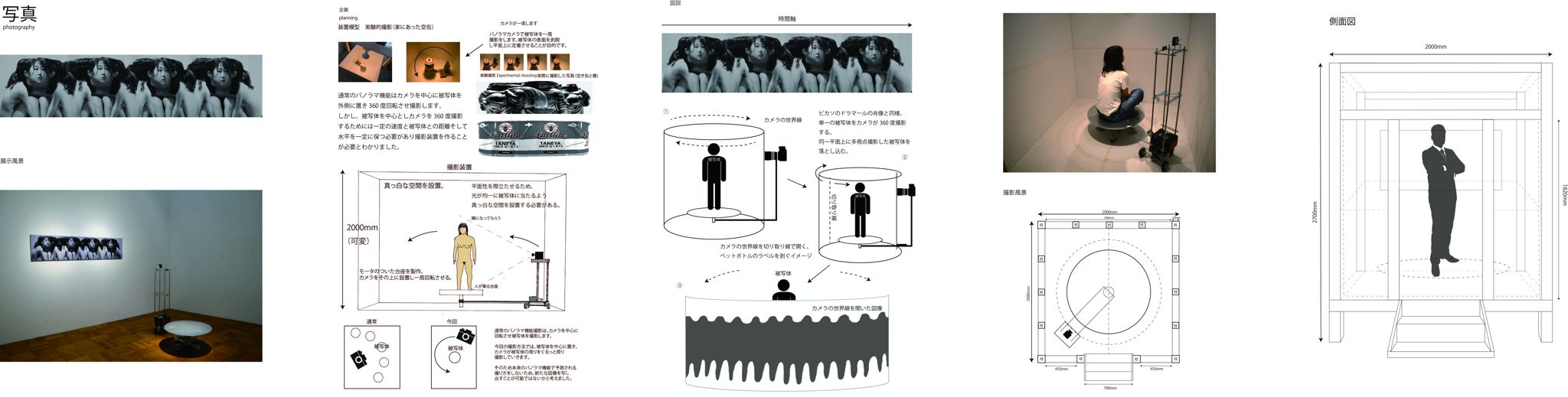 日本独自の空間概念を考える中で、キーワードとして「客観的多視点」という考え方をもとに制作をしています。日本庭園などに見られる構図に鑑賞者を中心として360度見渡す設計ではなく、庭園を囲うように鑑賞者が中心を眺めながら移動するための場が設けられています。また洛中洛外図屏風で見られる客観的な多視点を一つの画面上に複合する構図などが存在します。中心を意図的に空洞にし、神域として侵入しない領域を設け世界を縮小して切り取る視点が日本文化の中には存在しているのではないかと思います。私たちが当たり前に使っているGoogleマップやVR、カメラのパノラマ機能などの空間設計には、鑑賞者を中心とし複合した画像で世界を構成しているのではないかと考えています。もしかするとこの視点は西洋型のパースペクティブを元にした主観的多視点で構築されているのではないかと思いました。そこでパノラマ機能を使い通常の撮影方法であるカメラを中心に置き被写体を外側に360度撮影するのではなく、被写体を中心に360度回転させ撮影することでで日本独自のデジタル空間を作れるのではないかと考えました。