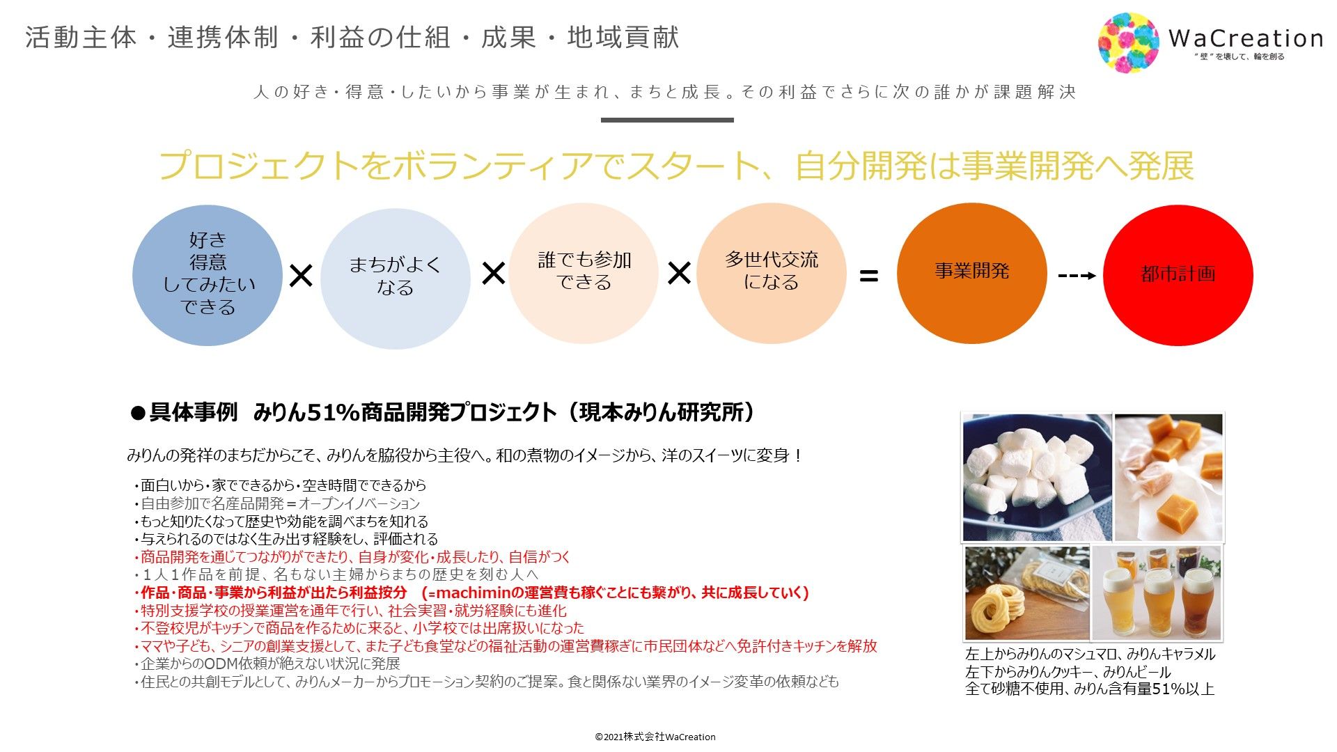 コミュニティで知り得たまちの課題を、集まった市民たちと解決する中で、市民・まち・ビジネスが育っていく事業