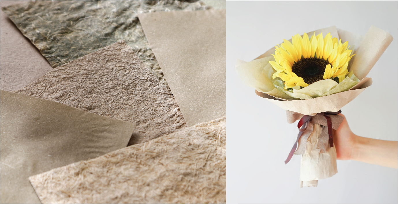 1.Flower Paper: made of 100% pulp from various flower stems and leaves. The material contains only fibre from discarded flowers, with no additives. The paper can be used for bouquet wrapping, packaging uses or artistic purposes.