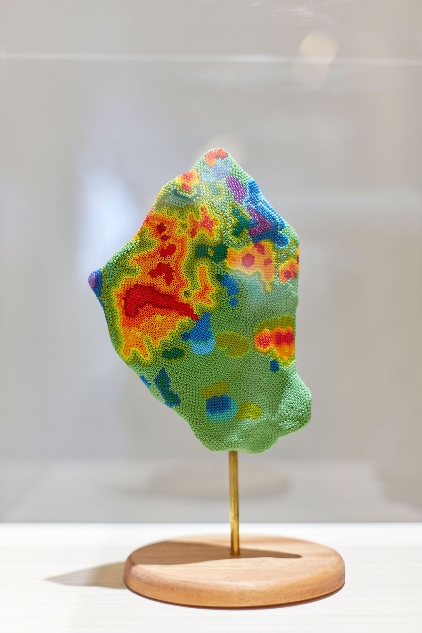 White plaster, bee wax, colored beads (traditional wixárika technique)