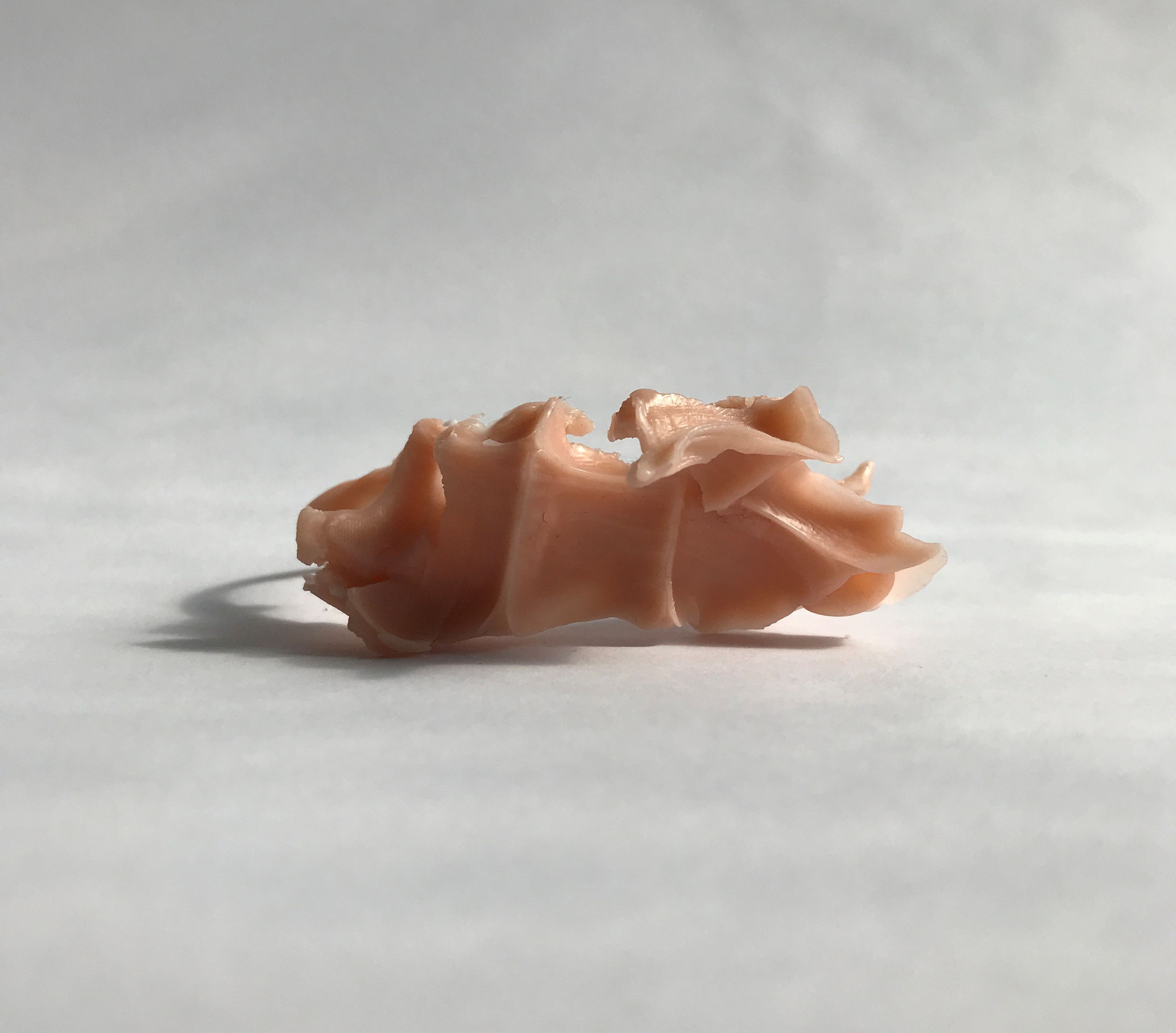 For primary research I looked at my own skin, focusing on textures and markings and scars. I then focused on the tactile element, acknowledging how the skin feels. Running my finger across a scar felt soft and repaired, the folds in my belly warm and squishy. As well as researching skin, it was important for me to research the epidemic of touch deprivation, or ‘skin hunger’. I had never heard of this neurological phenomenon, until the coronavirus pandemic. Skin hunger is the biological need for human touch. I knew this subject was personal to me, but I hadn’t quite figured out why until this research.