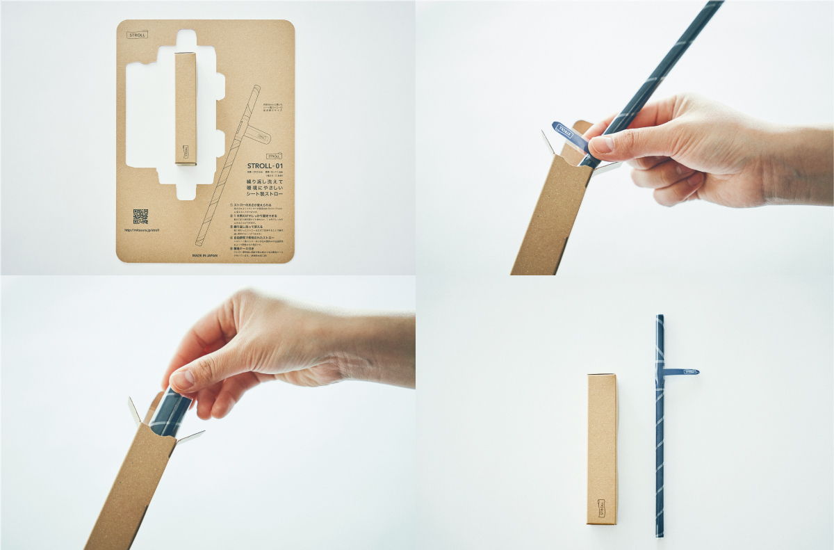 ストロール01は、1枚のシートをくるくると巻いて自分でつくるシート製ストローです。