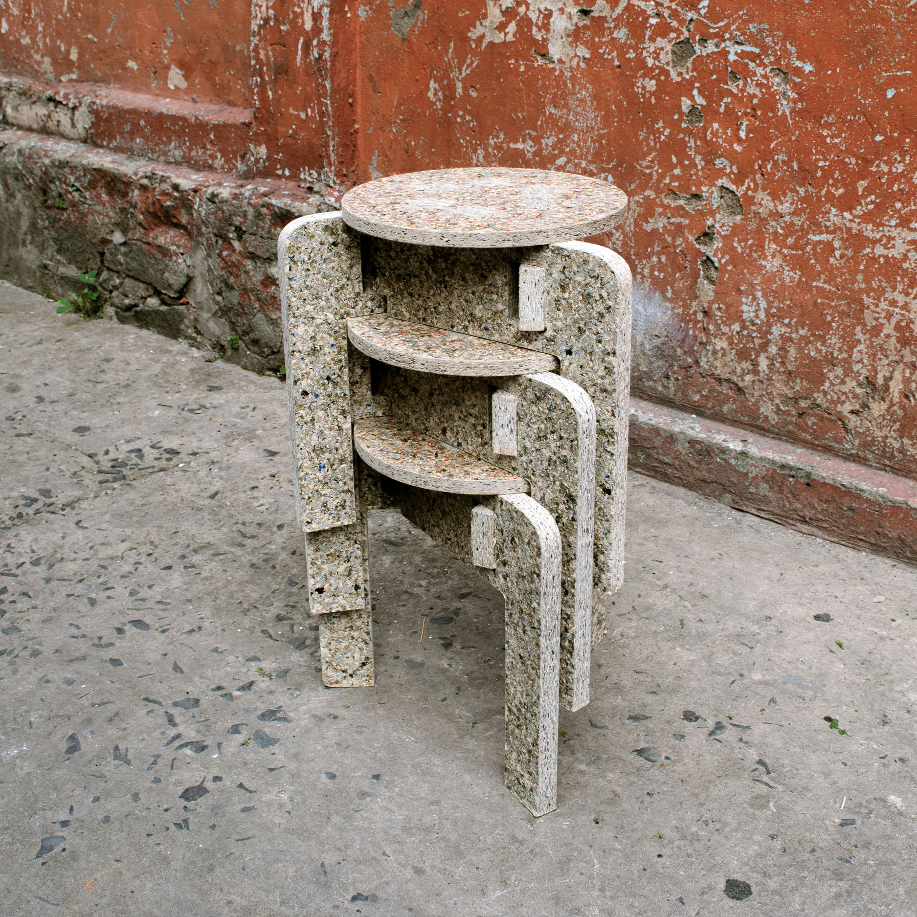 The PLASTICPeople furniture set is made entirely from up-cycled plastic waste in Ho Chi Minh City, Vietnam. Rice sought to bring design to the potential of these powerful and beautiful materials. The simple, modular design is inspired by the versatility and convenience of the monobloc furniture, commonly found on the streets of Vietnam. The furniture, all flat-pack, is efficiently cut from sheets of material. Southeast Asian country is one of the top five polluters of the ocean. By recognizing that plastic and people have caused this problem, PLASTICPeople exists to show that plastic and people can also be the solution.