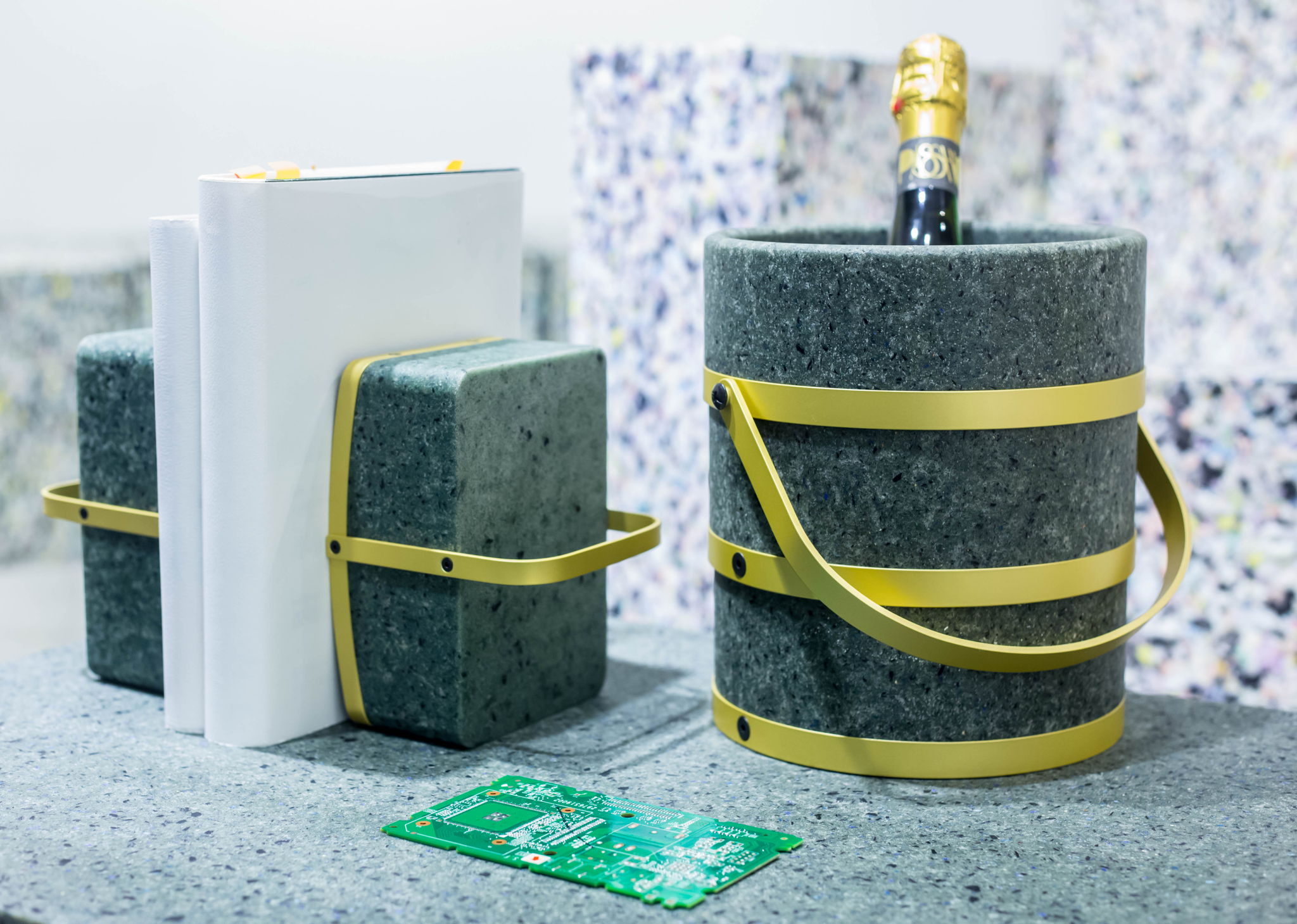 REnato lab has collaborated with collector, recycler, designer and manufacturer, to turn waste printed circuit boards (WPCBs), which are nearly 3–6 wt % of the total electronic waste, into “REstone” that could be used in interior design, product design and architecture. As an alternative for incinerating WPCBs, REstone can reduce carbon emissions by nearly 83%. It has welcomed its third generation this year, and was first used as exterior tiles in a public building.