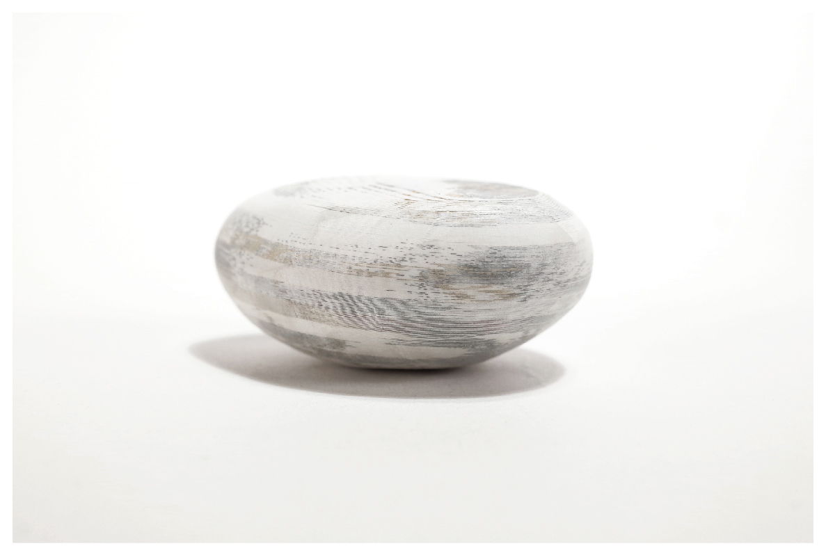 目まぐるしくトレンドが入れ替わり多様な人とニーズが交錯する東京では、常に新しいプロモーションやイベントが起こっています。この動きに伴い、日々 大量のチラシが生まれては消えていきます。たった一枚のチラシが生まれるまでに、紙をつくり提供する人、言葉を綴り編集する人、デザインする人、印刷する人たちがいます。わたしたちは、人々の営みによって生み出されるチラ シを貼合し、積層することで素材化しました。 この小石のような結晶は人々の経済的活動によって生み出された「社会的人工鉱物」と呼べるのではないでしょうか。紙の役割を「メディア」だけにではなく「マテリアル」として捉えなおすことで、紙の新たな可能性を提案しています。