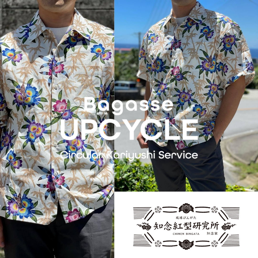 Kariyushi wear is a formal dress in Okinawa and is positioned like a Hawaiian aloha shirt, which is also a resort wear. BAGASSE UPCYCLE is committed to the issue of mass production and mass disposal in the apparel industry by sharing bagasse-derived Kariyushi wear, which is an unused resource of sugarcane, the core crop of Okinawa Prefecture.