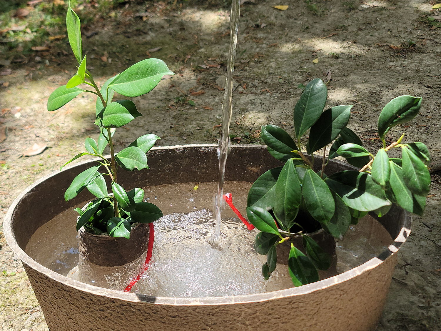 將外型如元寶的「仁舟水源寶育樹盆」做為蓄水容器,蓄滿水後應用毛細原理,透過導線供水給植物根部,提供樹苗水分,日後外殼腐爛也會成為天然有機肥,供養大地。只為環境留綠意、不留負擔、消弭土壤塑膠化的疑慮。「仁舟水源寶育樹盆」不僅可蓄水、還可避免陽光直射苗木、降低水分散失、同時也減少強風直襲,讓樹苗有穩定的水源,提供適合的生存環境。植樹地點往往是在偏遠地區,若採用傳統植樹法,每年皆需多次派遣水車及人工前往澆水,其「人力」、「資金」、「水車載送過程中的碳排放量」都是遠高於使用「仁舟水源寶育樹盆」的;對植樹而言長期可省下大量後續人力維管成本。「仁舟水源寶育樹盆」為植樹護林提供了一個節省人力、成本、提高存活率及友善環境的解套方案! -