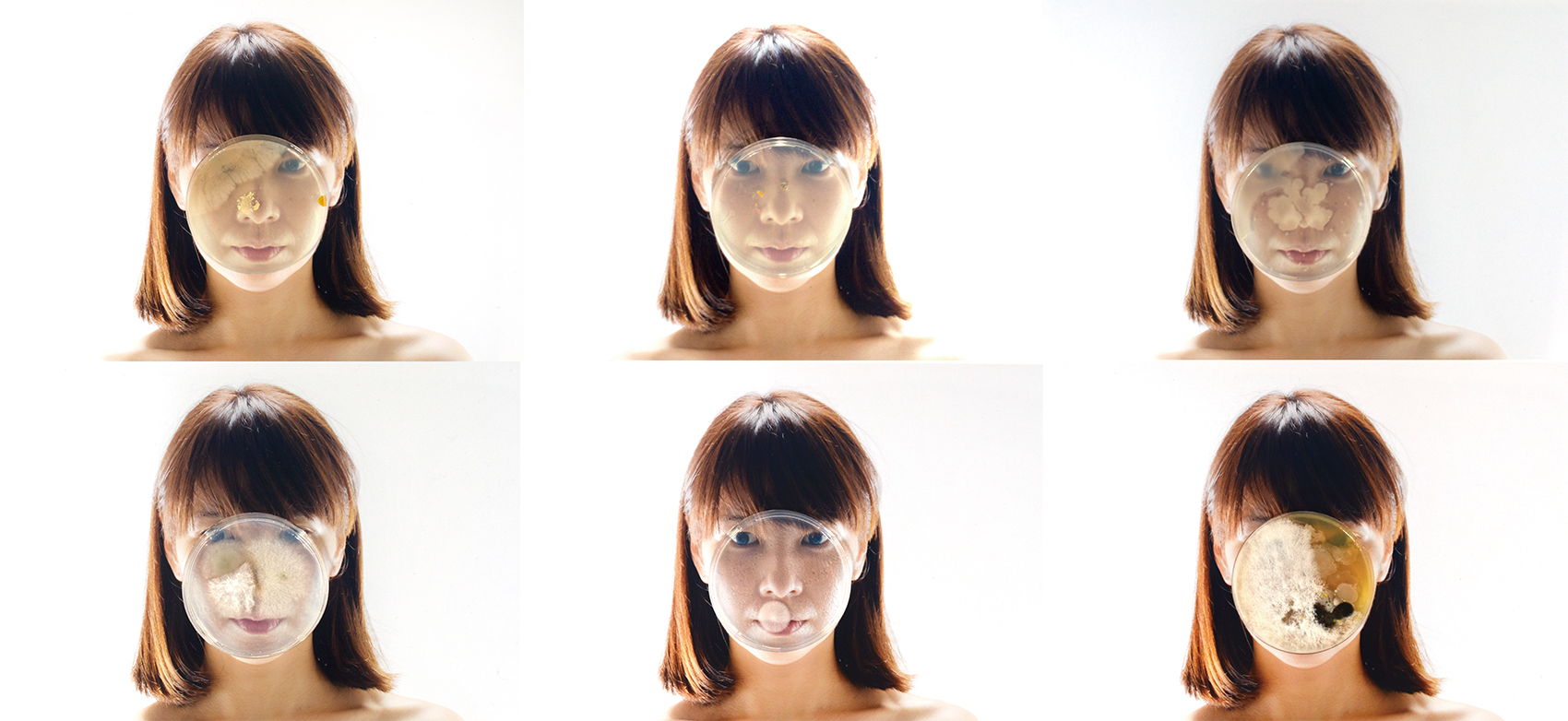 自分自身に、付着した眼に見えない微生物を、美しく、そして「奇妙」に表現した作品である。