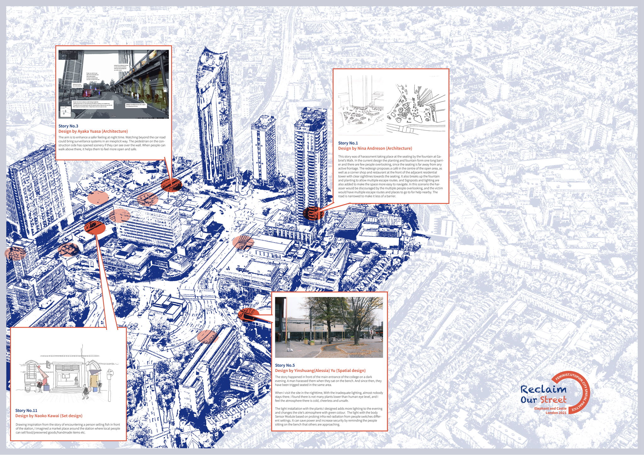 Then based on the collected stories, urban designers designed the proposal of multiple possible better future urban spaces. Social media shared the project with more urban designers, related organizations, and councils, promoting changes and reshaping urban space. We Reclaim the urban narrative.