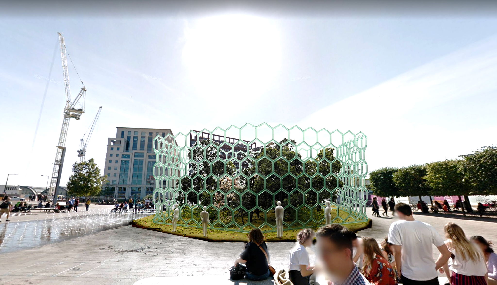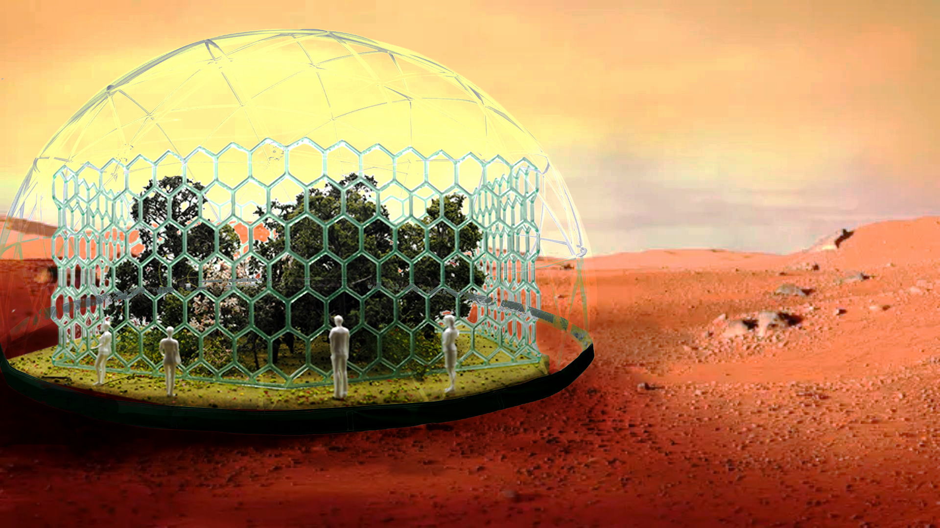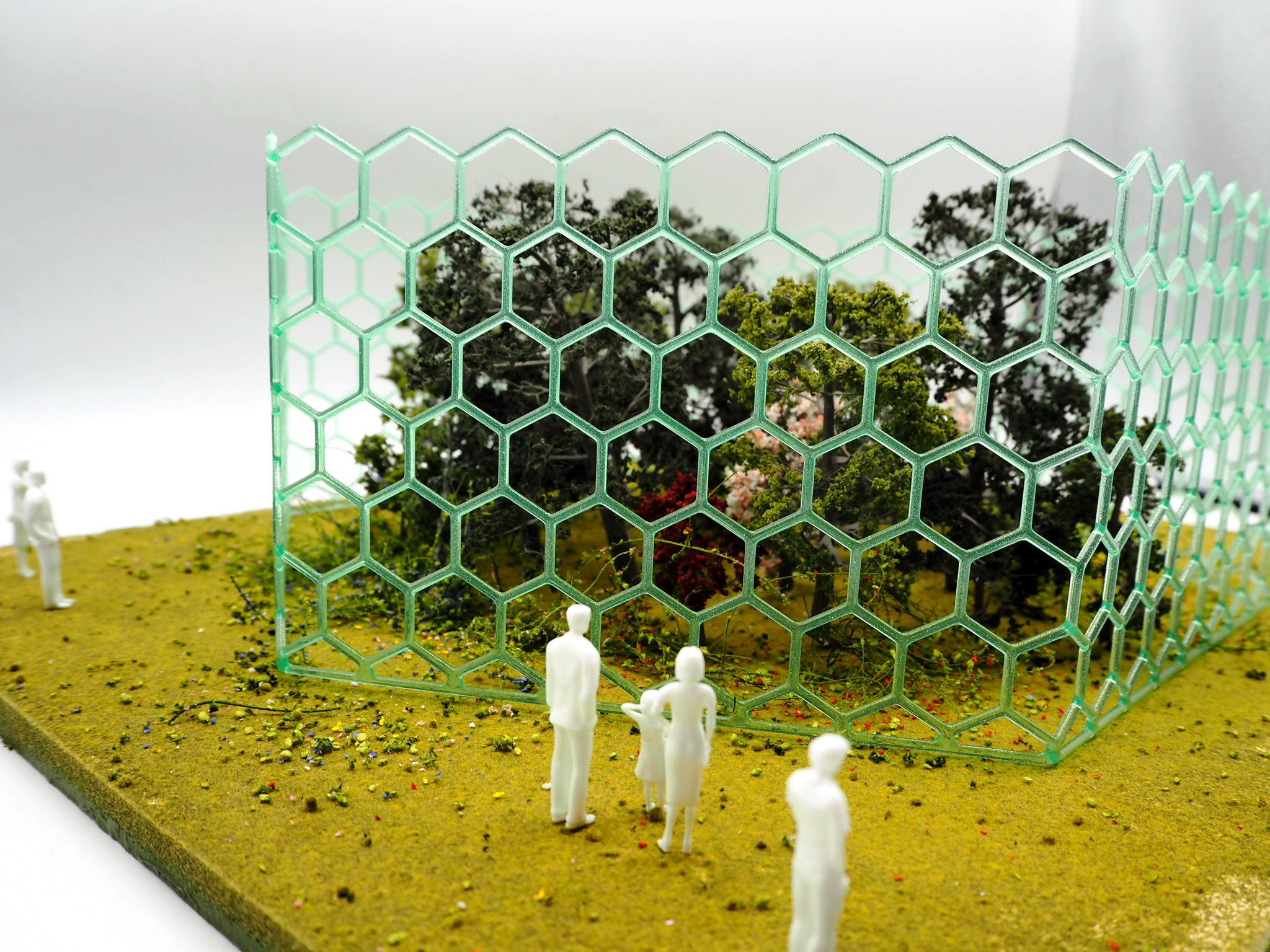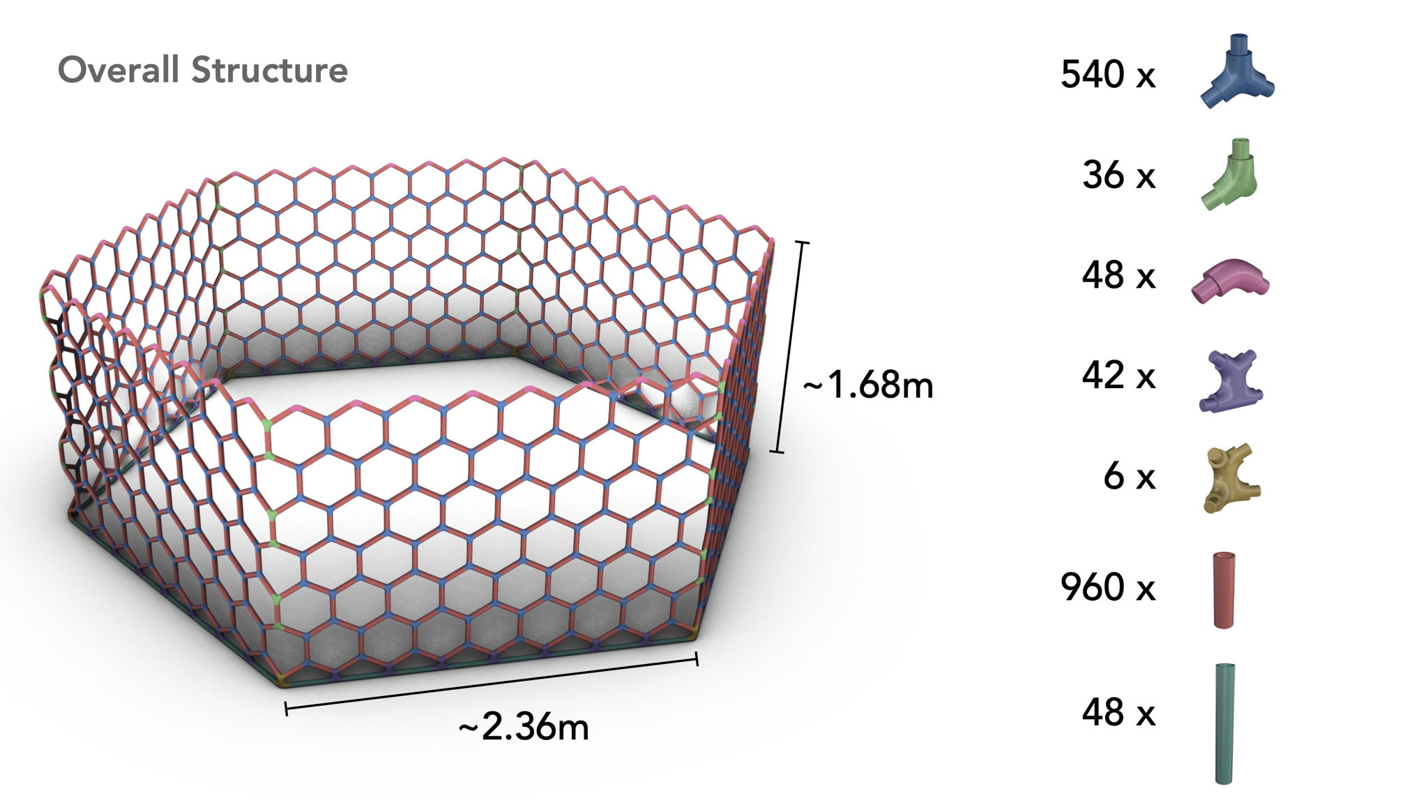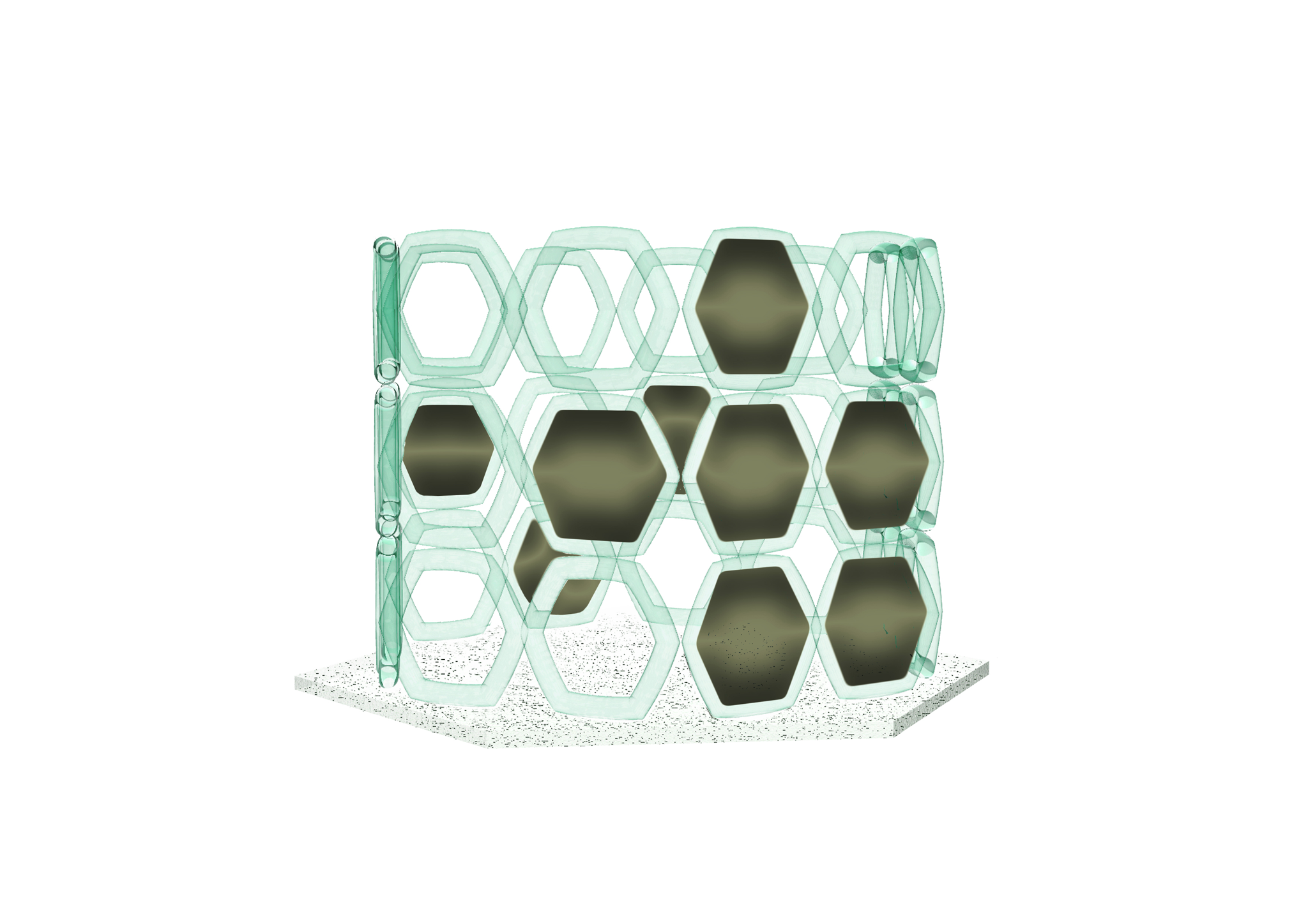 The final structure proposed is a futuristic greenhouse made of tubular hexagons, each containing mycelium and wires to allow for the data transfer. The modular aspect of the design assures its circularity; once the mycelium in a tube dies it can easily be emptied into the garden as fertiliser and refilled with new substrate. This would allow for multiple applications of the same structure, in different case scenarios and scales, from a large outdoor garden to a panelled wall in someone’s home.