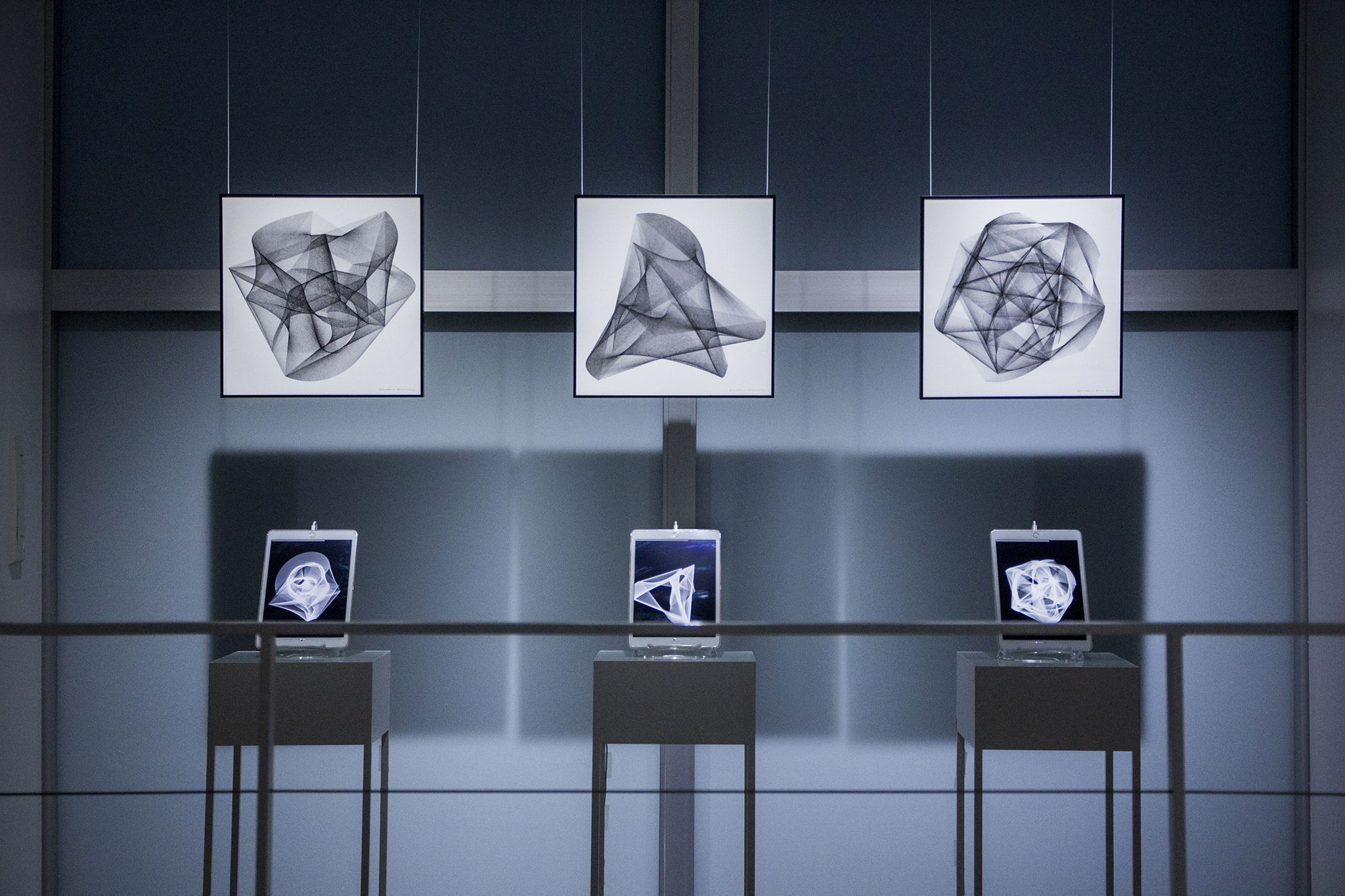 In addition, in order to emphasize the theme of “drawing in four dimensions, ” the live drawing by pen plotter was exhibited along with the works, and the process of drawing which took about 5 hours was shown to the viewers. -