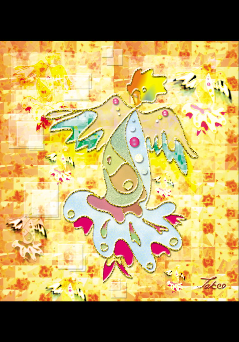 子供のらくがきをもとに、ca37がアートに仕上げ、プリント販売や広告素材、
