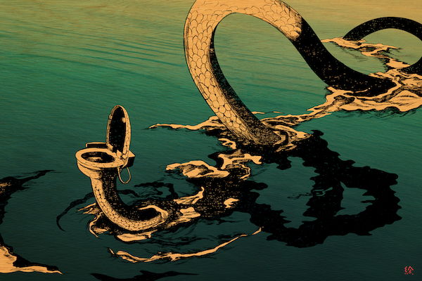 民主主義と安楽死反対に対する批判を絵にしました。架空の生物を弱者のために描いています。