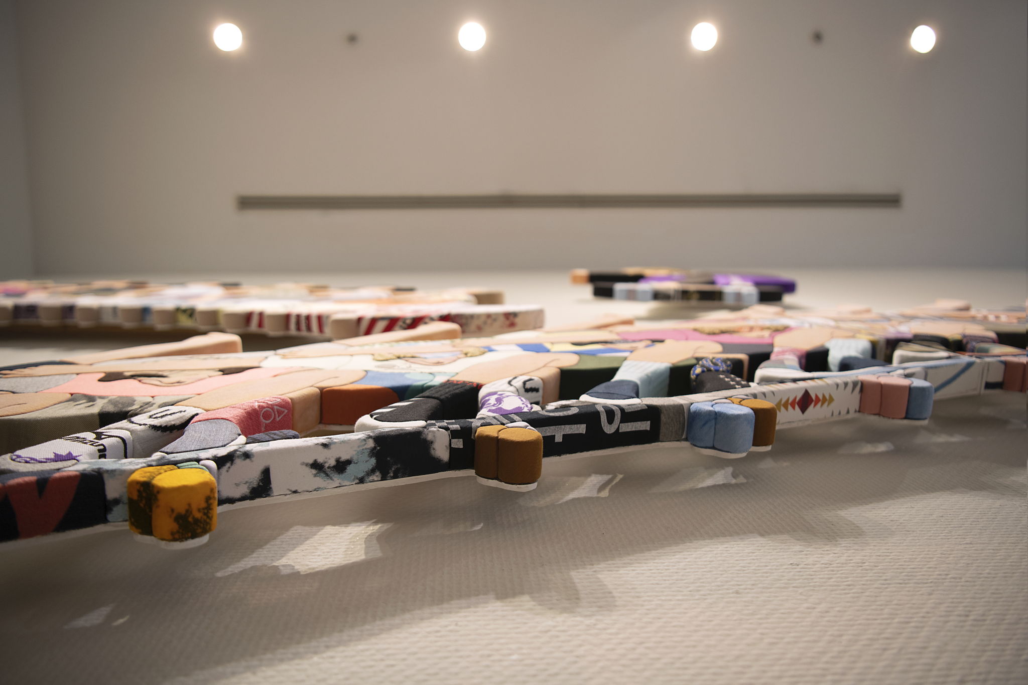 本来捨てらてしまう古着を、人間の良心が過去から受け継がれていること鑑賞者に伝えるために制作しました。 -