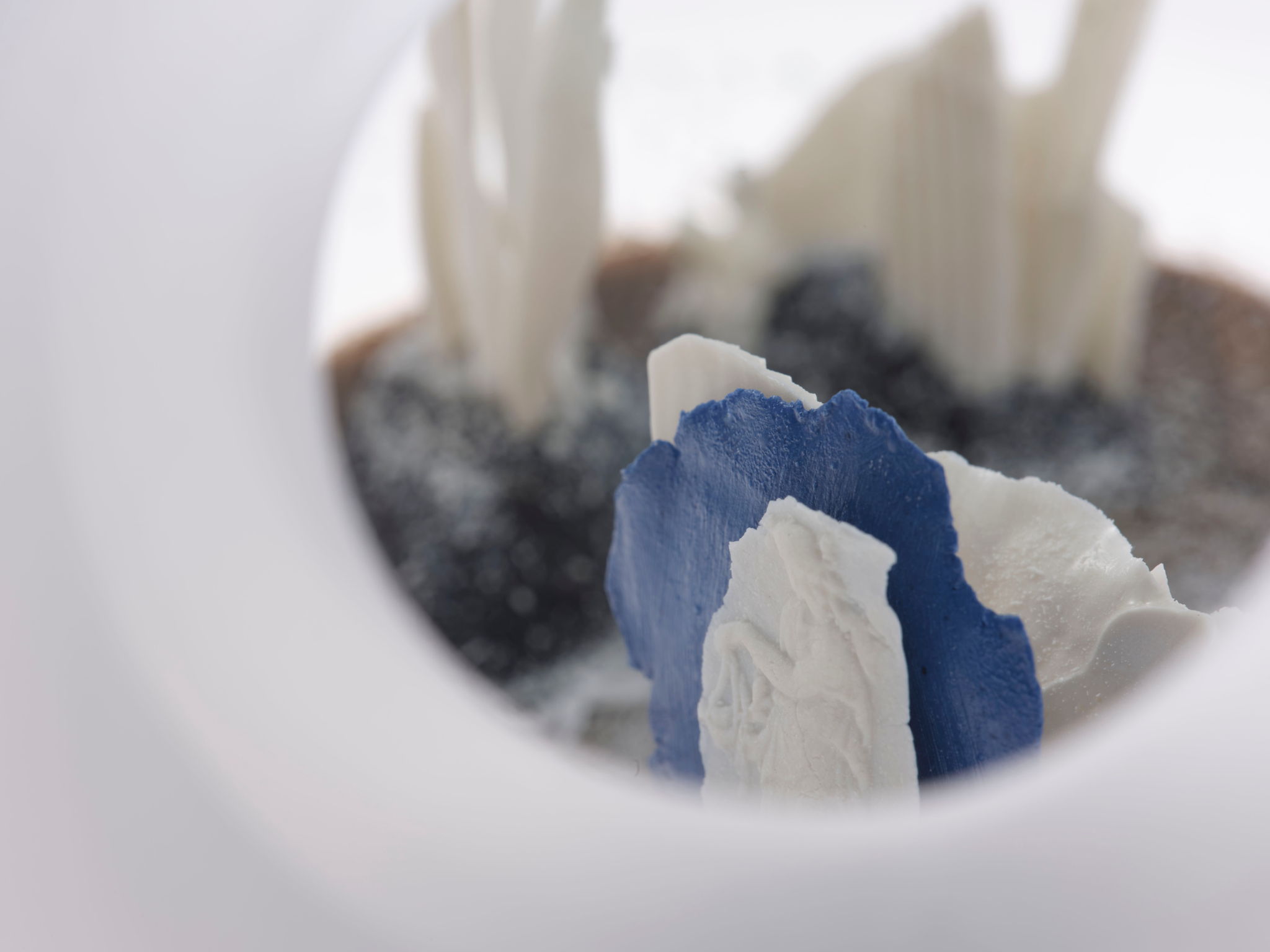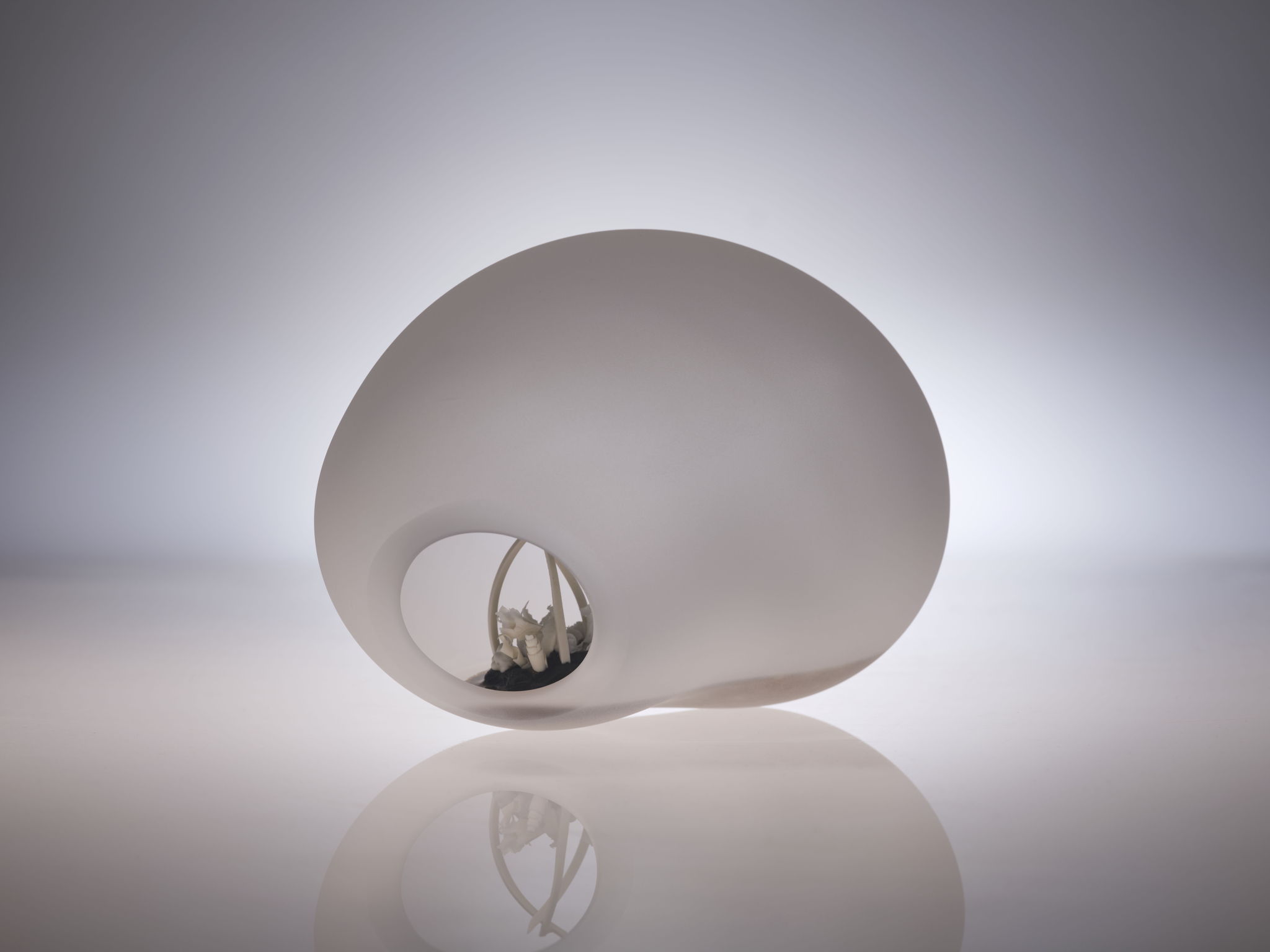 lost paradise I — 23x16x15cm; lost paradise III — 26x14x12cm; Medium: glass, porcelain, sand, clear silicone