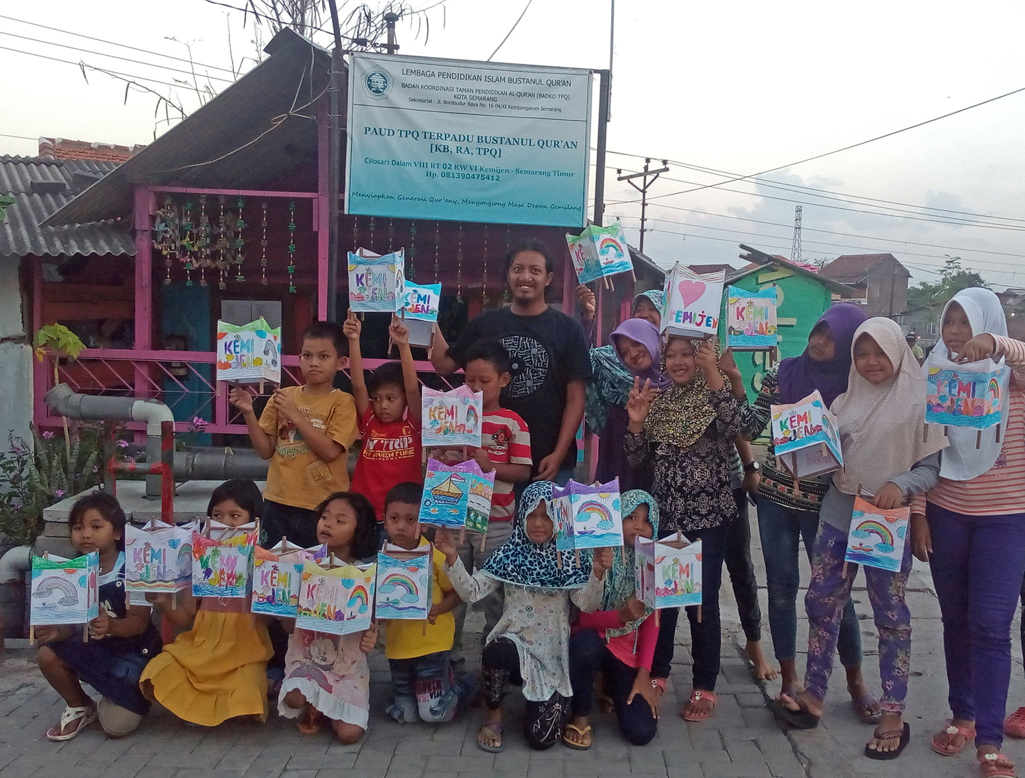 The Damar Kurung lantern installation beside the Banger river, Cillosari, east of the city of Semarang is an artistic production by Novan Effendy after a short residency in this area. This project was conceptualized by Ahmad Khairudin, an Indonesia-based curator with involving the children of TPQ Bustanul Qur'an. Kemijen village has complex problems, especially related to the issue of tidal flooding. Talking about flooding (rob) does not only talk about the condition of Kampong Kemijen, but also the failure of the city system for years to overcome drainage and environmental problems.
