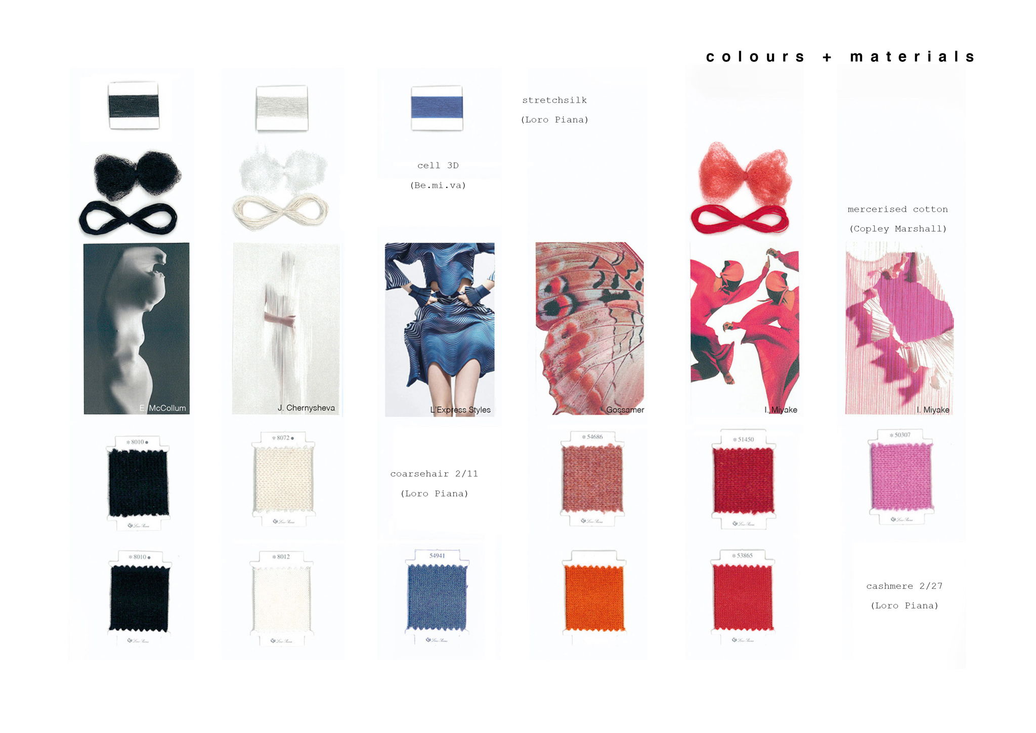 The knitwear collection is composed of 5 human scale womenswear outfits for a total of 8 garments (3 tops, 2 dresses, 2 skirts and 1 pair of pants). Some of the products were realised with the help of a manual domestic knitting machine (Brother KM2000), while others were produced on digital knitting machines, both Stoll and Shima Seiki (sponsored). Since the technique is a combination of existing basic knitting structures and can be applied to any yarn mix and gauge, the production method is not relevant for its performance. However, of course, digital knitting allows the production to be faster and to achieve more complex patterns.