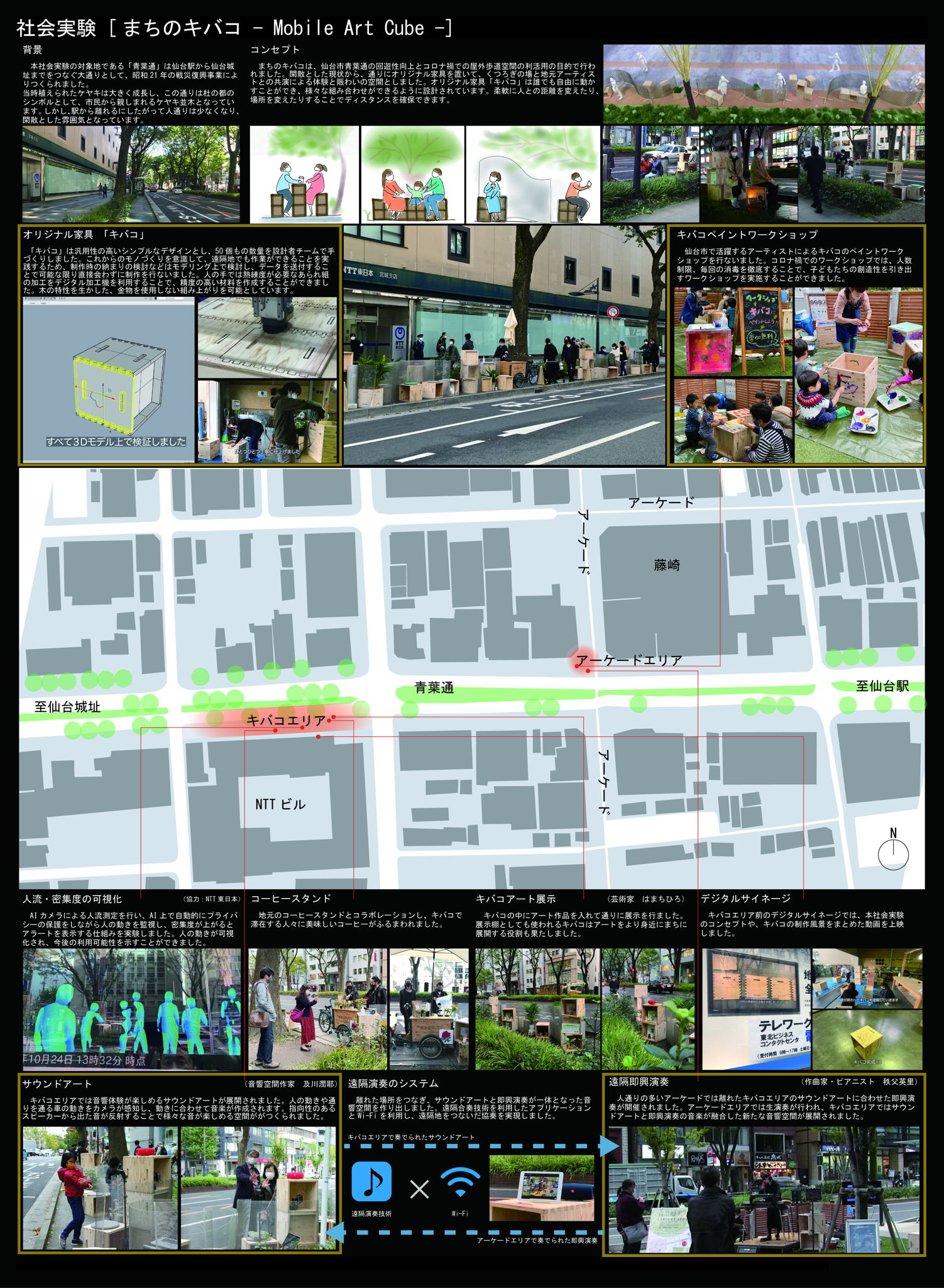自然界で最も調和し安定した形である六角形を、日本の伝統模様「亀甲つなぎ」をモチーフに亀甲が連続して繋がるデジタルアートを構成する。伝統(過去)を現代から未来へとつなぎ、アート空間からリアル空間、デジタル空間へと時空を超えたアートである。リアル空間は我々が設計デザインをしたSDGs未来都市のR市庁舎の亀甲格子棚である。