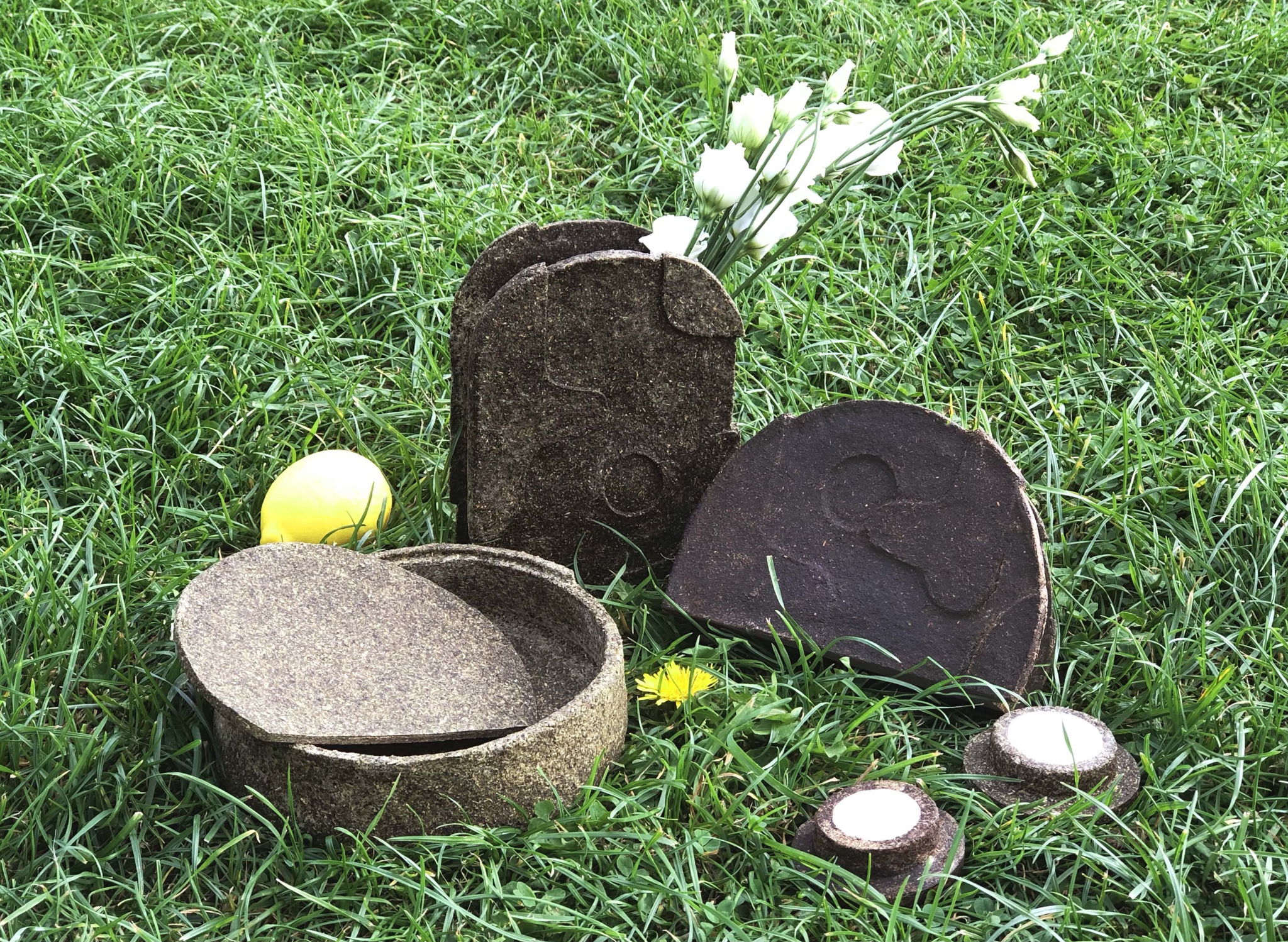The collection focuses on commemorative objects, amplifying their materiality and emphasizing the importance of memorialization in the human experience. The objects use antique symbols - and attempt to embed them in a more extended history of materials - and the scale and form of introducing tea materials into the domestic environment, where the materials come from nature and return to nature. The pigments also come from the tea itself, so the whole plant is used for production. The containers are made from tea with added starch, flour and water. Recipes such as vases and candle holders include tea mixed with bio-resin.
