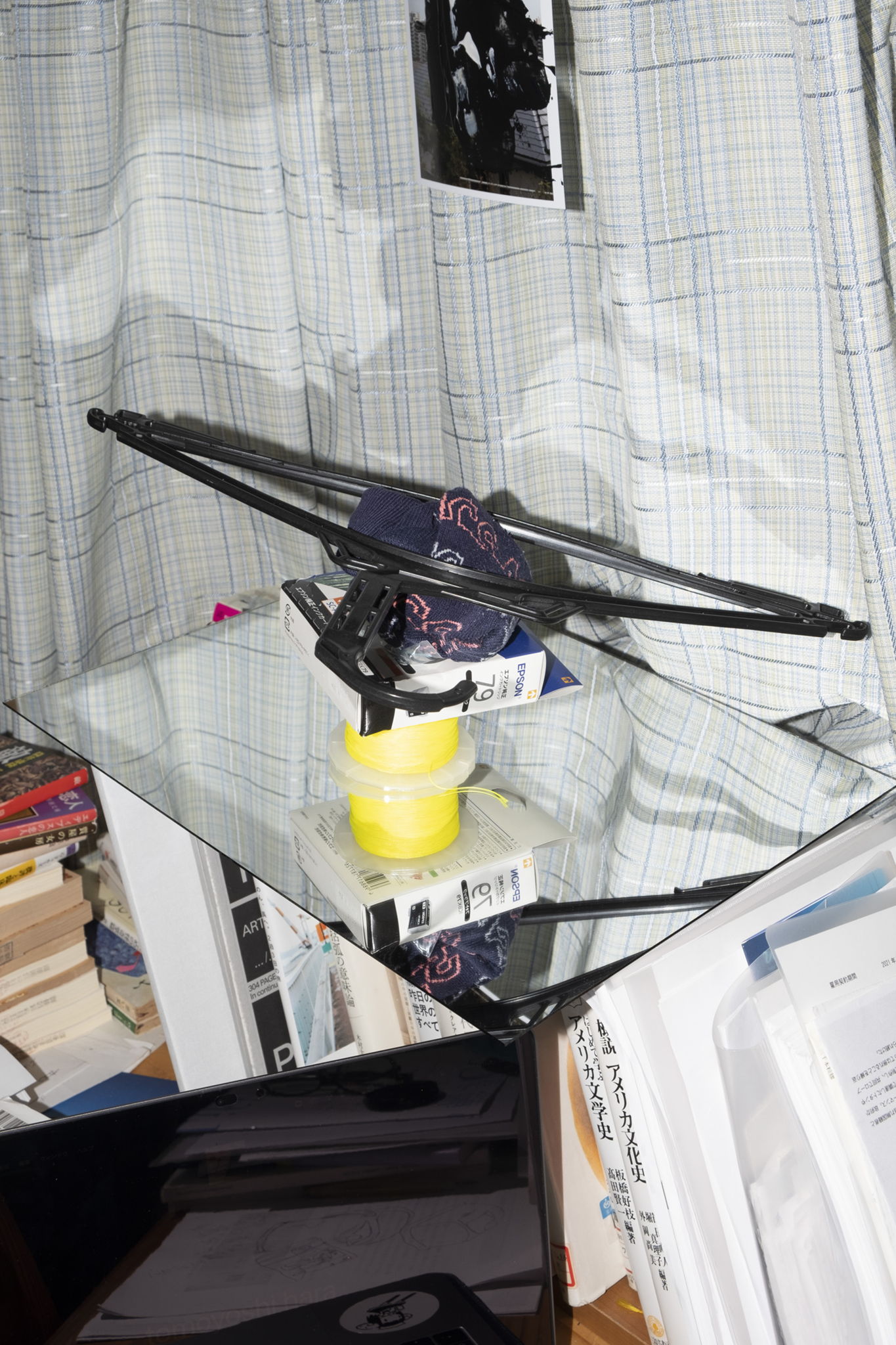A work that deals with synchronization and asynchronism between people who are remotely connected and those who watch it. The viewer can only imagine .Therefore, the viewer does not know whether or not the instruction was actually given. In this production, I was indoors (in my room), but the instructor misunderstood that I was outdoors. That is why words like "stone," "branch," and "tree" were used in the instructions. As a result, the hanger became a tree branch. The title is from Ryota Yamada's poem " We decided not to forgive you " . I chose this title because I thought it was the best word to describe this work, which pretends to be "connected" based on asymmetric relations.