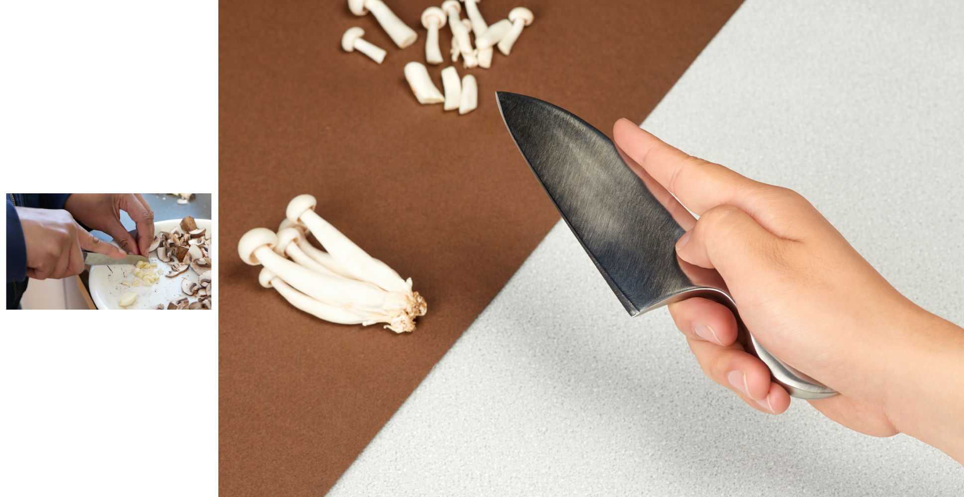The stainless steel knife is short and compact, with a length of just 18cm. It is easy to hold, well balanced in weight, and allows the user to get close to the food to stay in control.