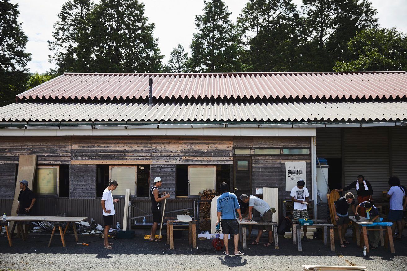Currently, FVK's physical space consists of a workshop for surfboard making (under construction by DIY) and a working space in Perspective's office, a 120 year old traditional farmhouse, both located in Keihoku. The building of the workshop is a former warehouse attached to the farmhouse.