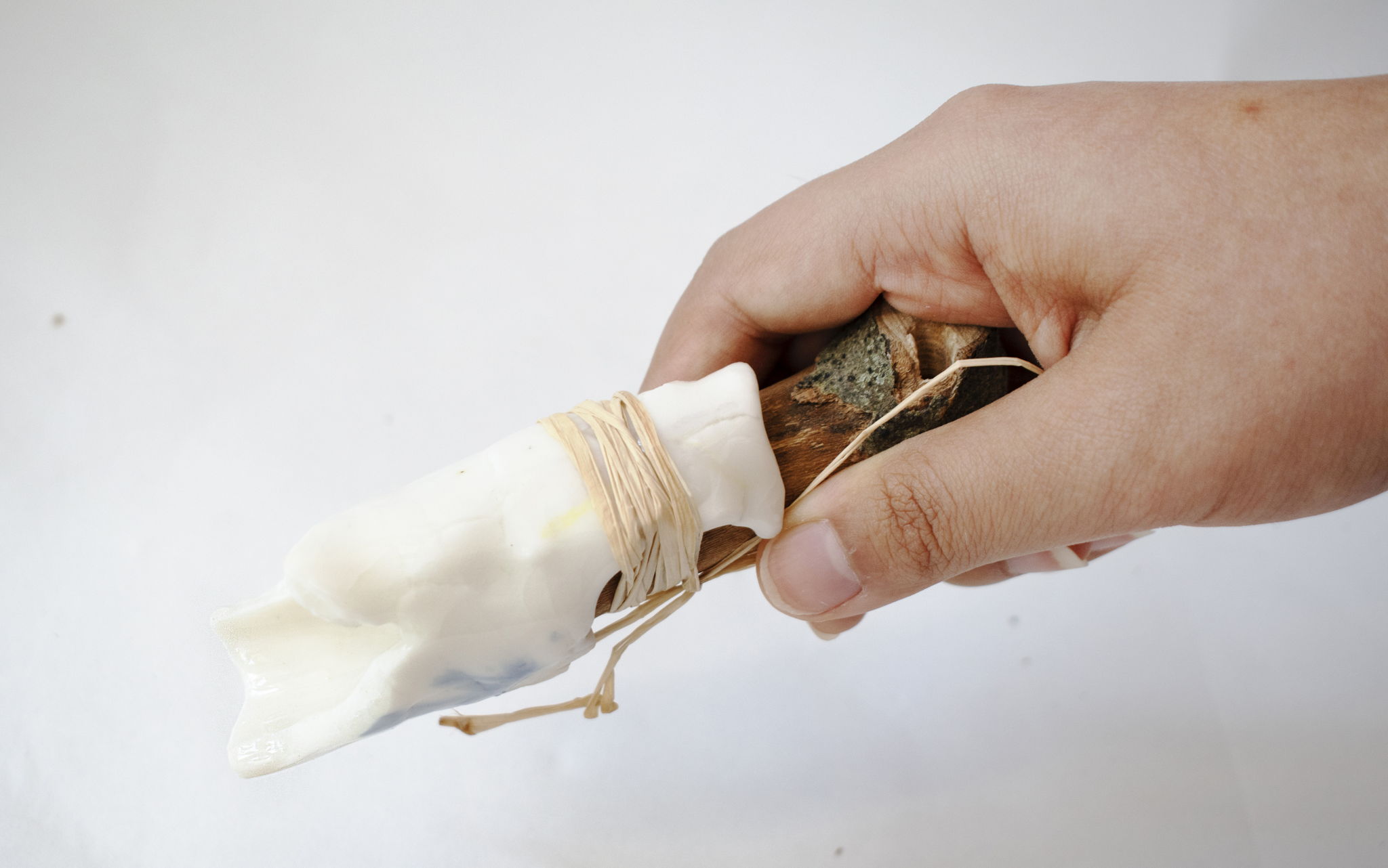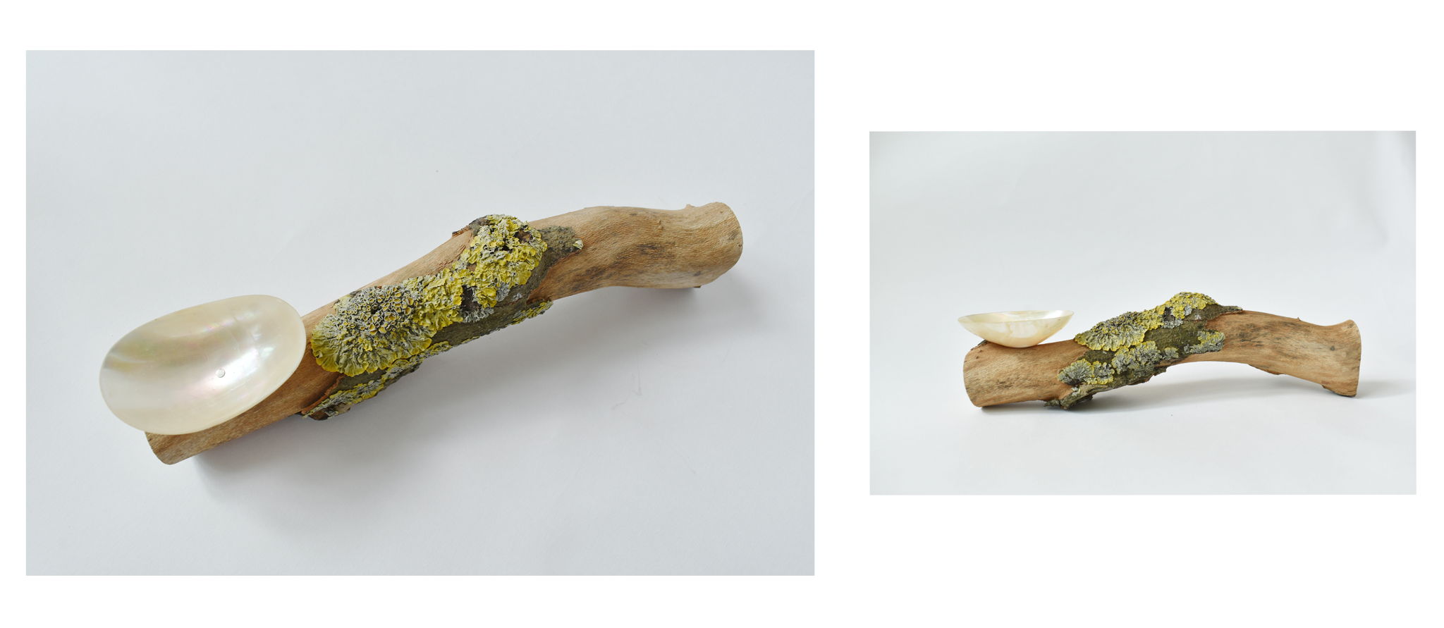 Materials- Wood sticks from London parks, glazed porcelain, pearl, straw, silver