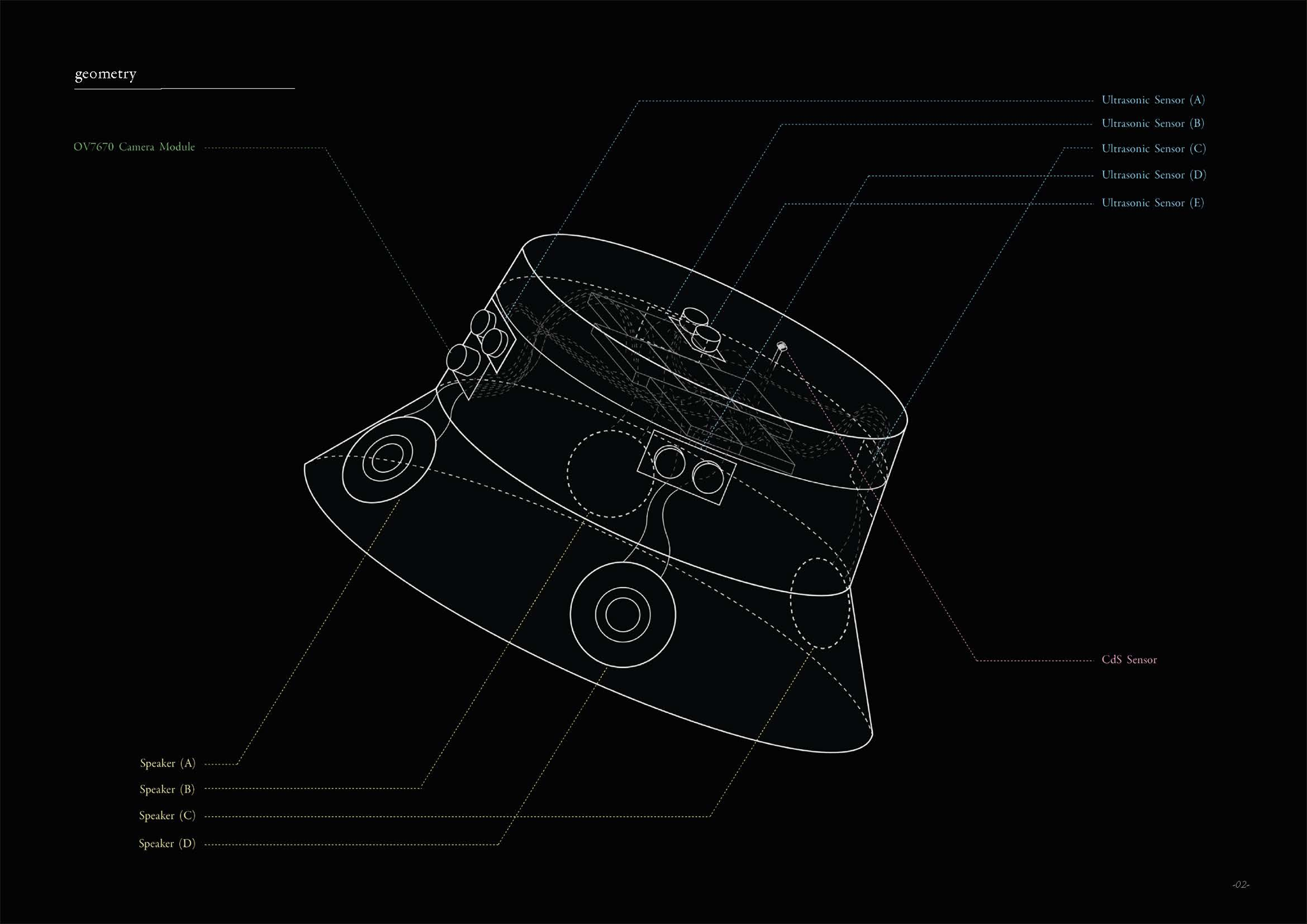 “Hear-chitecture”は、建築を聞くことを可能にする帽子である。5つの方向(前後左右+上)への距離、照度、そして色の三種類の視覚情報が、この帽子により音量とエコー、オクターブ、そしてコードの聴覚情報にそれぞれ翻訳される。視覚に障害のある私の友人は、この建築をどのように感じるのだろうか。彼女は建築の道を考えたことがあるのだろうか。そうだとしたら、今ある建築教育で彼女は何を学べるのだろうか。そもそも可能なのだろうか。そんな疑問からこのプロジェクトはスタートした。
