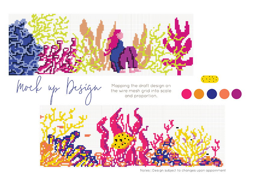 We love public art installation because we can enjoy it while living our regular daily lives without having to go someplace special to experience it. We want to infuse colours and patterns to the places we live, which contribute to improving the parks aesthetics. We intend to add crawling flower plants that give natural grounding to the installation and help them grow together over time. On the same note, we believe in the community building and place-making benefits of public art. The Reef will be a strong statement towards the neighbourhood.