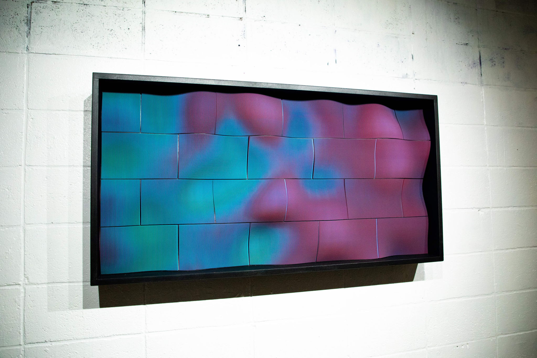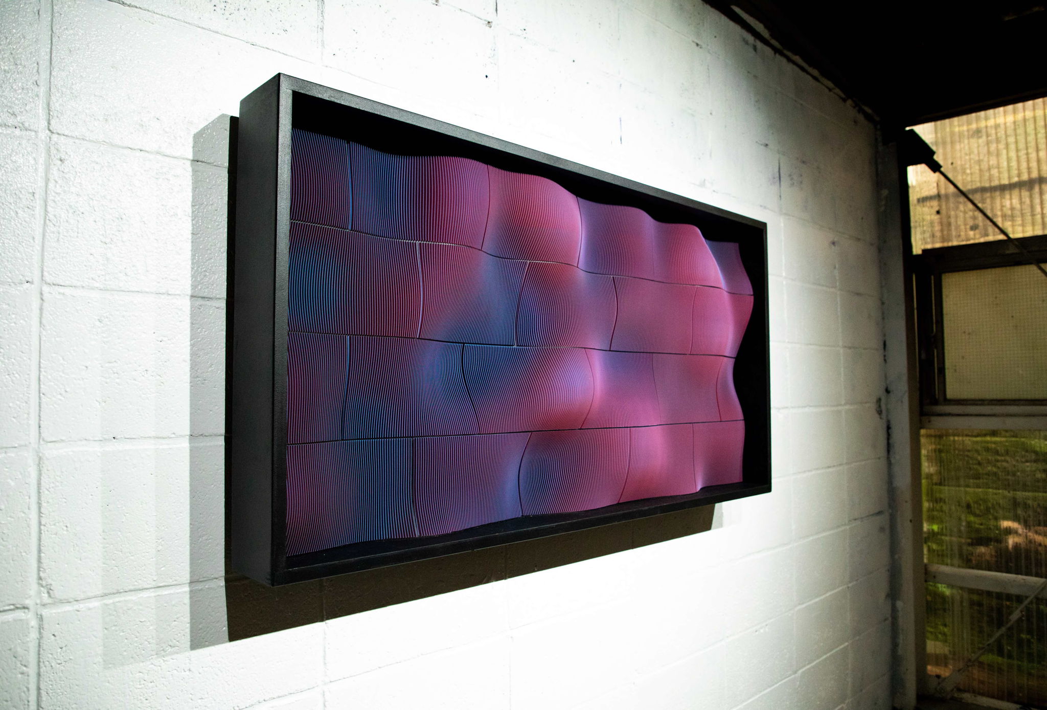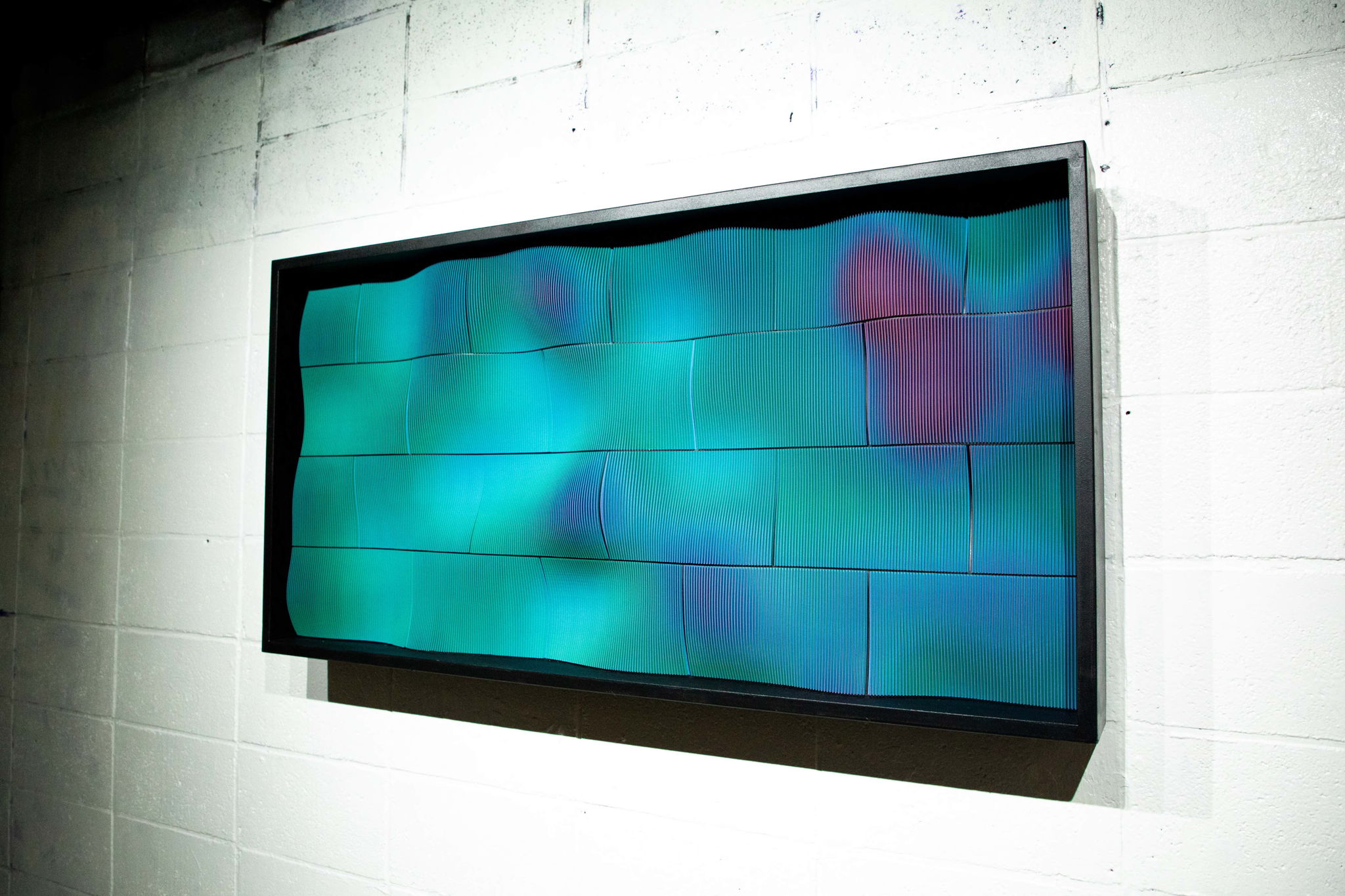 Transpective is a 3D printed wall that color shifts depending on the angle of view, like a morpho butterfly fluttering in the sky.