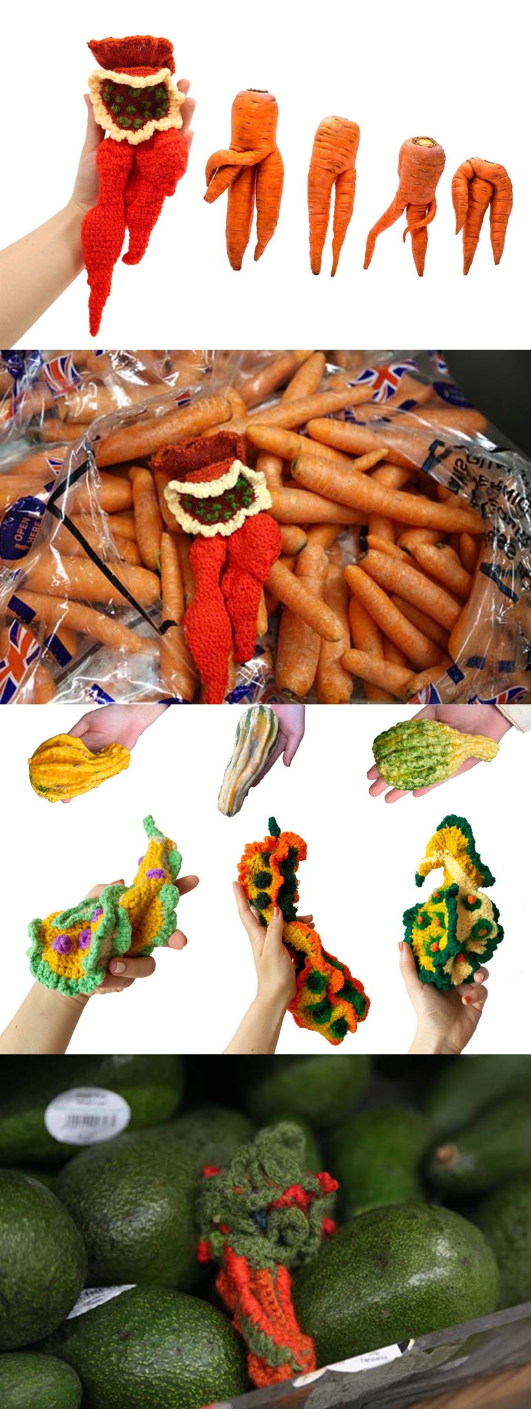To challenge the perfect standard of aesthetics, I re-evaluated the imperfections in my project. I brought the ugly food back to life as anthropomorphic cartoon characters renamed “Uglleis”. I combined knitting samples and other mixed media techniques to make the physical sculptures, also adding my personal experiences to complete the characters’ stories, presenting them as animations.