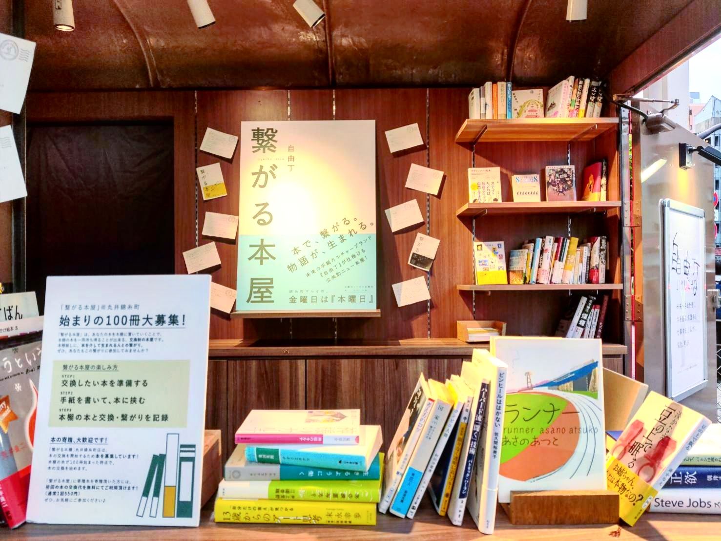 現在までに繋がる本棚は3か所に設置(小売店、駅前大型デパート路面、商業施設内)。交換回数は100回以上。WEBサイトは現在開発中。 -