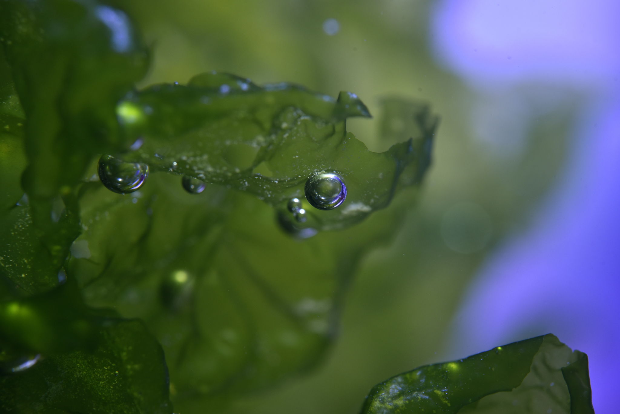 Sea Lettuce photo captured in the moment just before bubble release during photosynthesis. These bubbles don't follow a straight path when released. Instead the shaking is translated into a circular movement as they move upwards thus producing a shaking sound